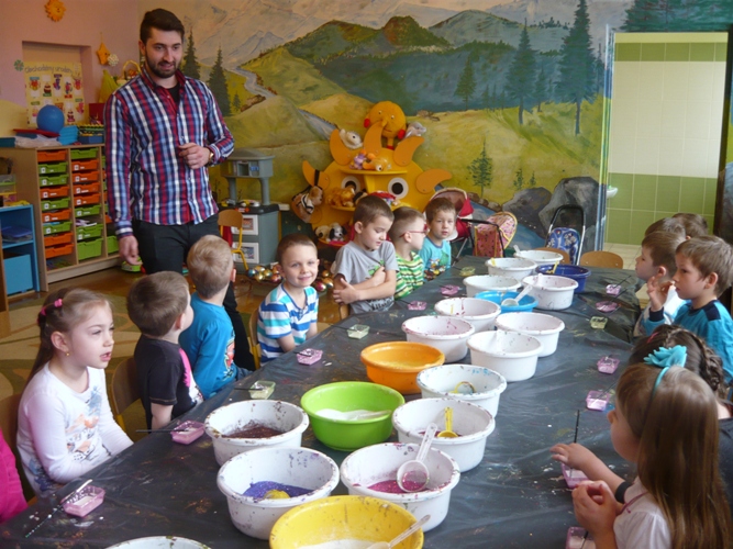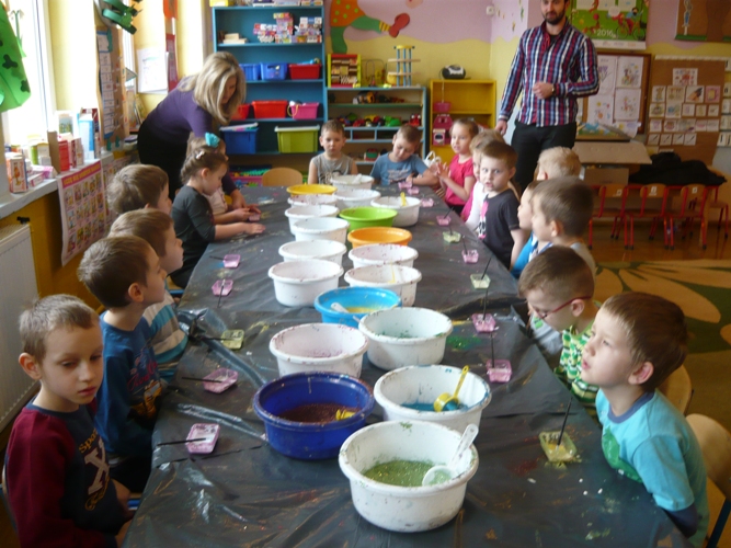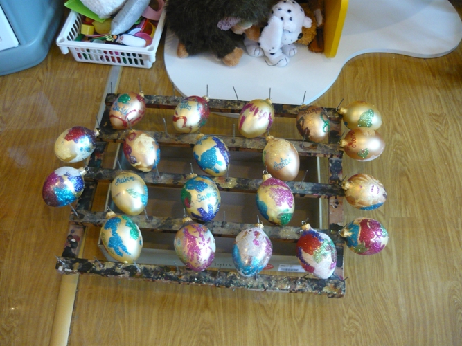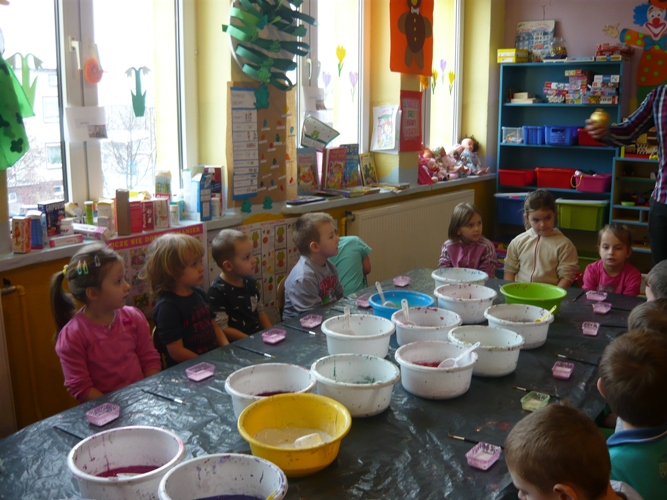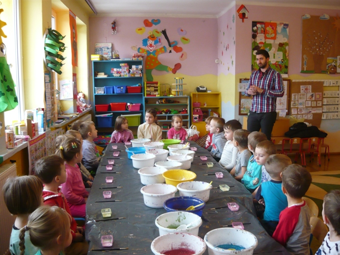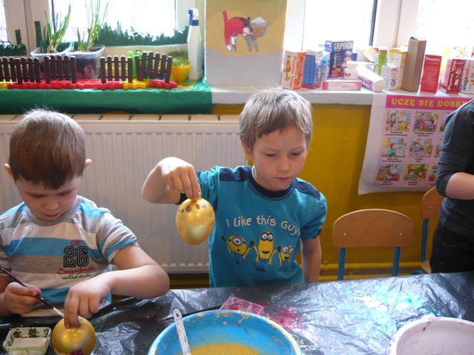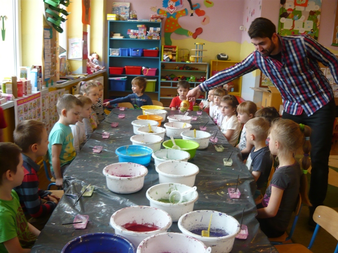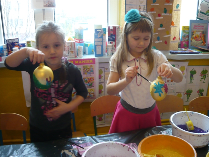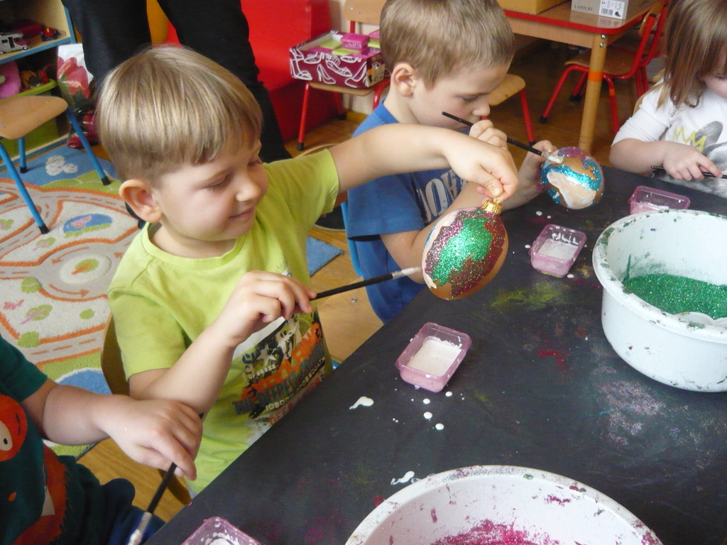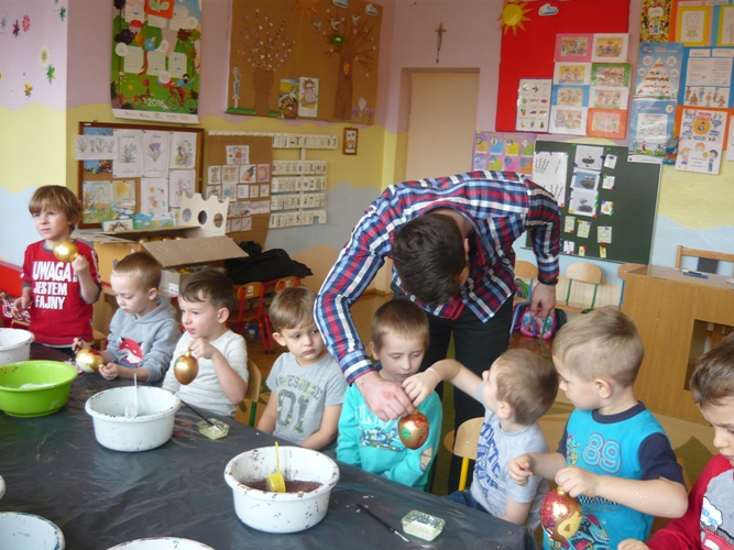 Z okazji zbliżających się Świąt Wielkanocnych w dniu 5 marca dla chętnych przedszkolaków zorganizowane zostały warsztaty plastyczne, które prowadziła firma „Diamentis”- ozdoby szklane z Rozprzy.Celem warsztatów było zapoznanie dzieci z tradycją wielkanocną, z ich symboliką oraz rozwijanie umiejętności manualnych dzieci. Uczestnicy spotkania zostali zapoznani z symboliką jajka wielkanocnego oraz sposobem jego dekorowania. Następnie każde dziecko otrzymało szklane jajko, które mogło własnoręcznie ozdobić kolorowym brokatem wg własnego pomysłu. Tak pięknie udekorowane jajka przedszkolaki zabrały do swoich domów, aby mogły zdobić wielkanocne stoły.