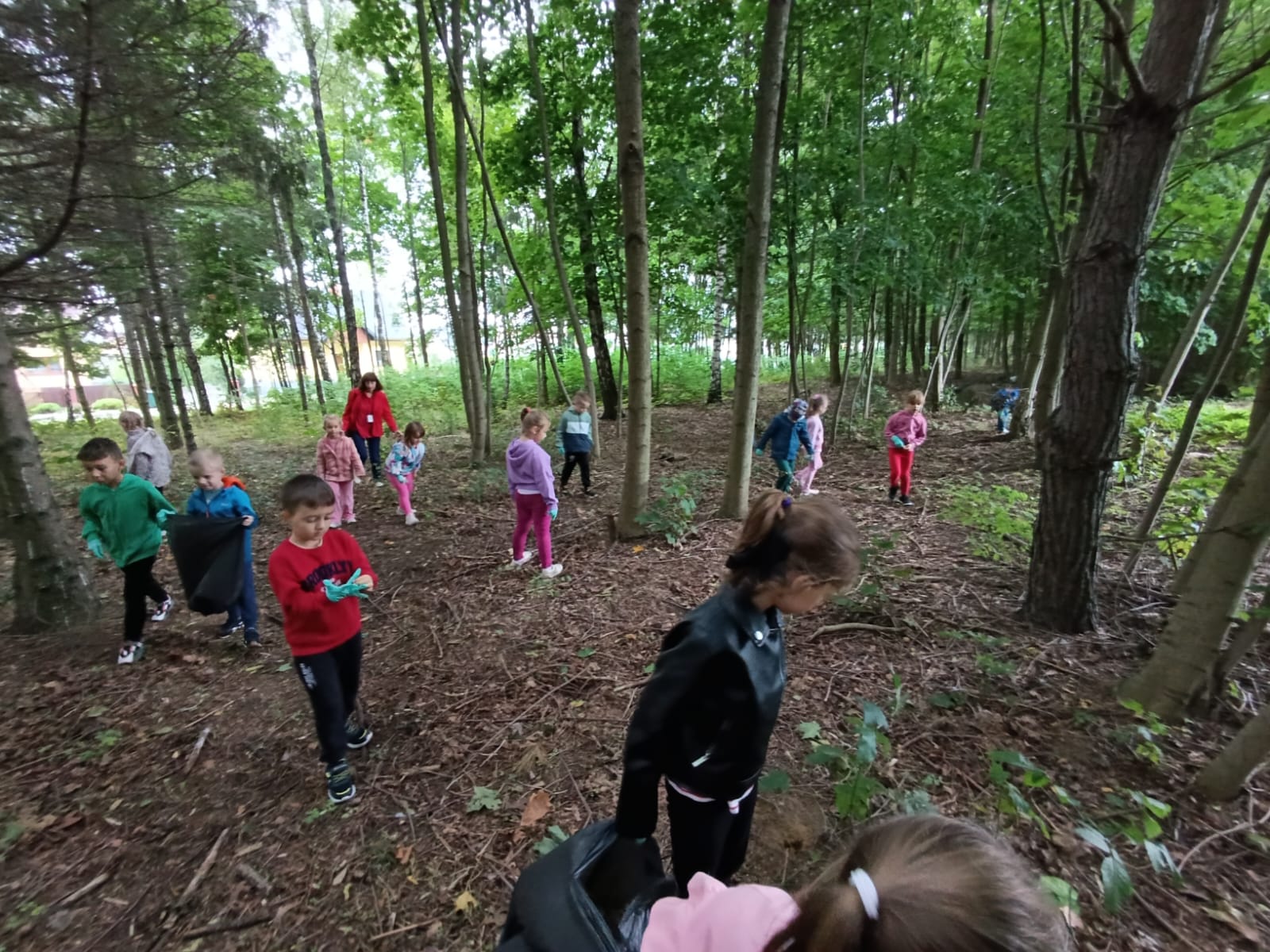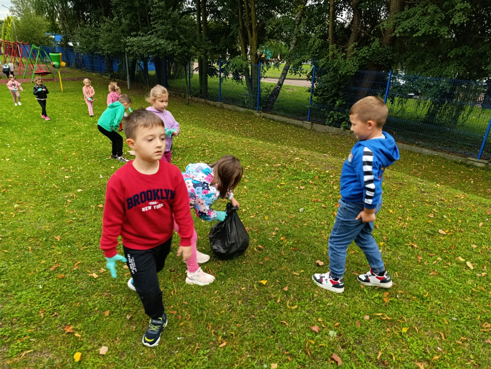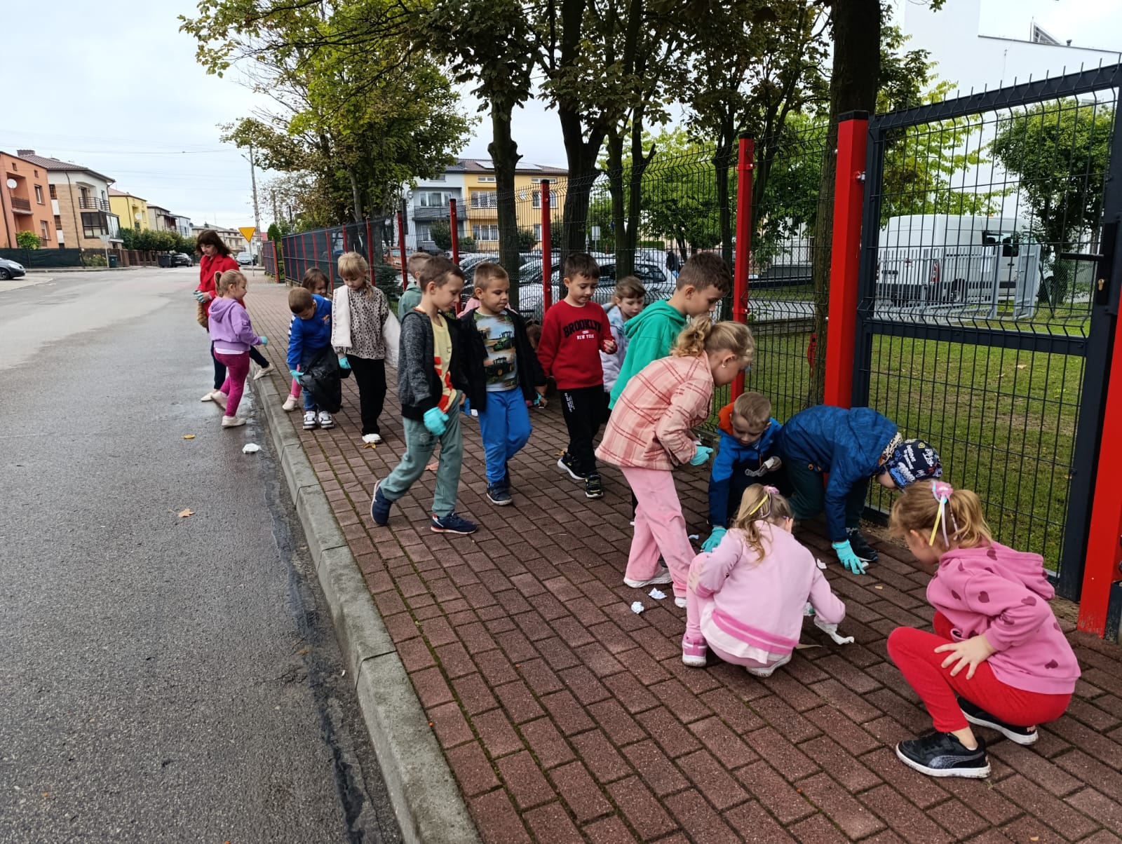 Do działań na rzecz natury aktywnie włączyły się po raz kolejny przedszkolaki z grupy Sówki. 19 września dzieci zaopatrzone w jednorazowe rękawiczki, worki na śmieci i pozytywnie zmotywowani wzniosłym celem przedsięwzięcia przystąpiły do zbierania śmieci w najbliższym otoczeniu budynku przedszkola oraz na terenie pobliskiego osiedla i lasku. Udało się zabrać kilka worków odpadów, które wypełniły głównie plastikowe i szklane butelki, opakowania foliowe i papierowe oraz kapsle.