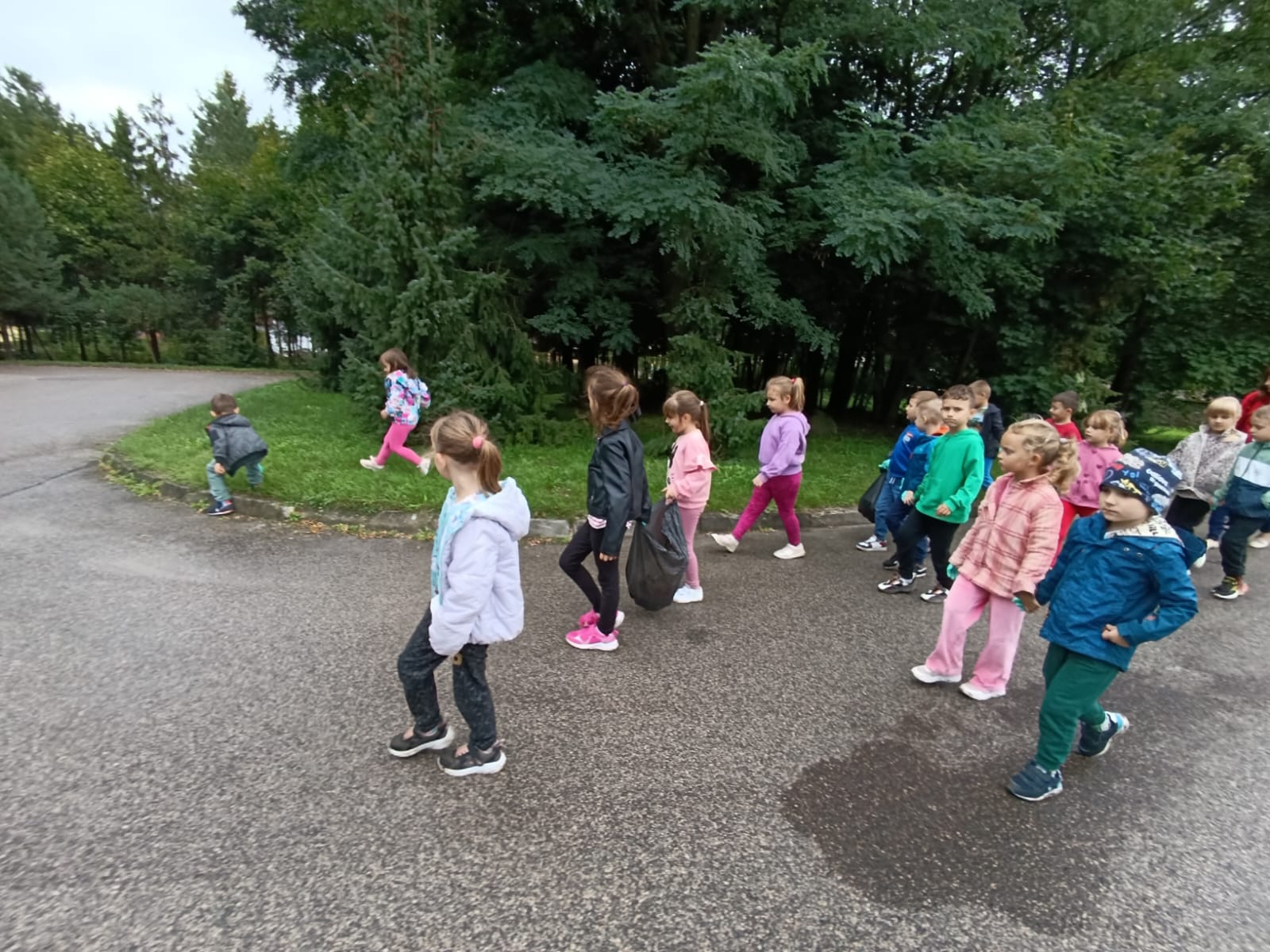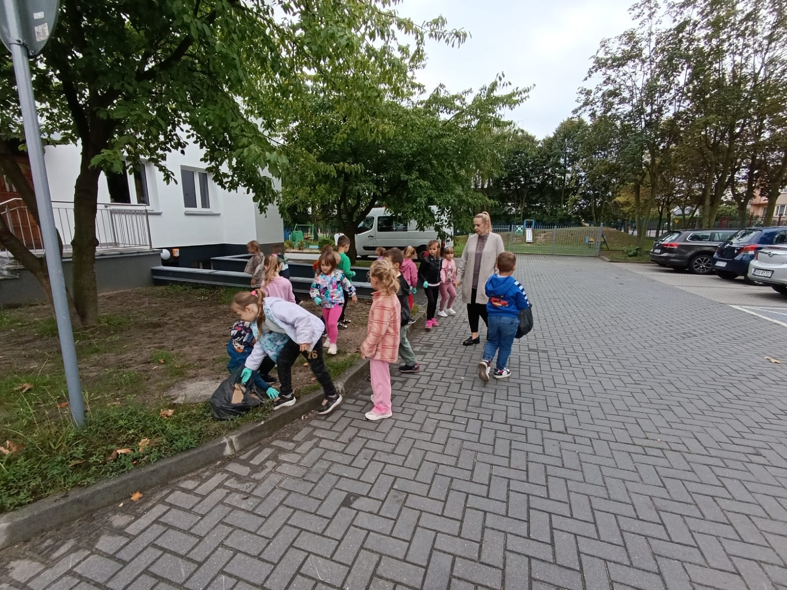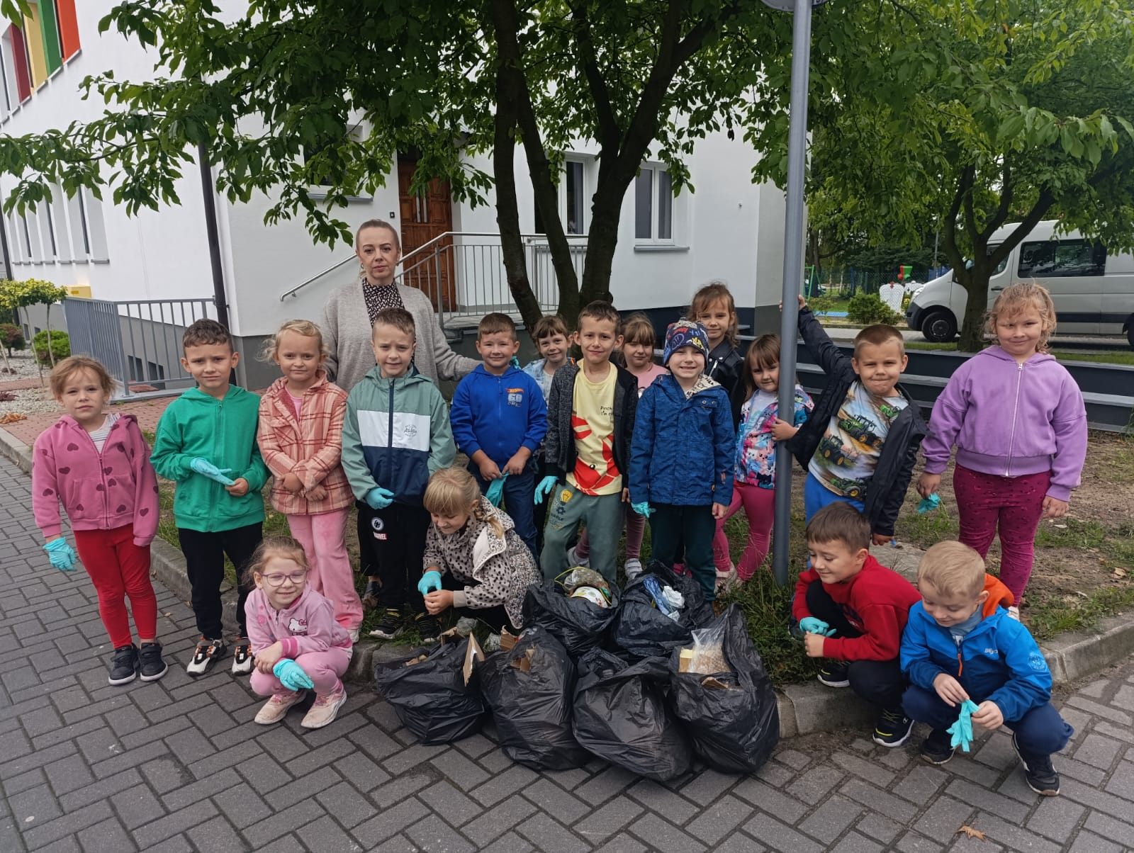 Do działań na rzecz natury aktywnie włączyły się po raz kolejny przedszkolaki z grupy Sówki. 19 września dzieci zaopatrzone w jednorazowe rękawiczki, worki na śmieci i pozytywnie zmotywowani wzniosłym celem przedsięwzięcia przystąpiły do zbierania śmieci w najbliższym otoczeniu budynku przedszkola oraz na terenie pobliskiego osiedla i lasku. Udało się zabrać kilka worków odpadów, które wypełniły głównie plastikowe i szklane butelki, opakowania foliowe i papierowe oraz kapsle.