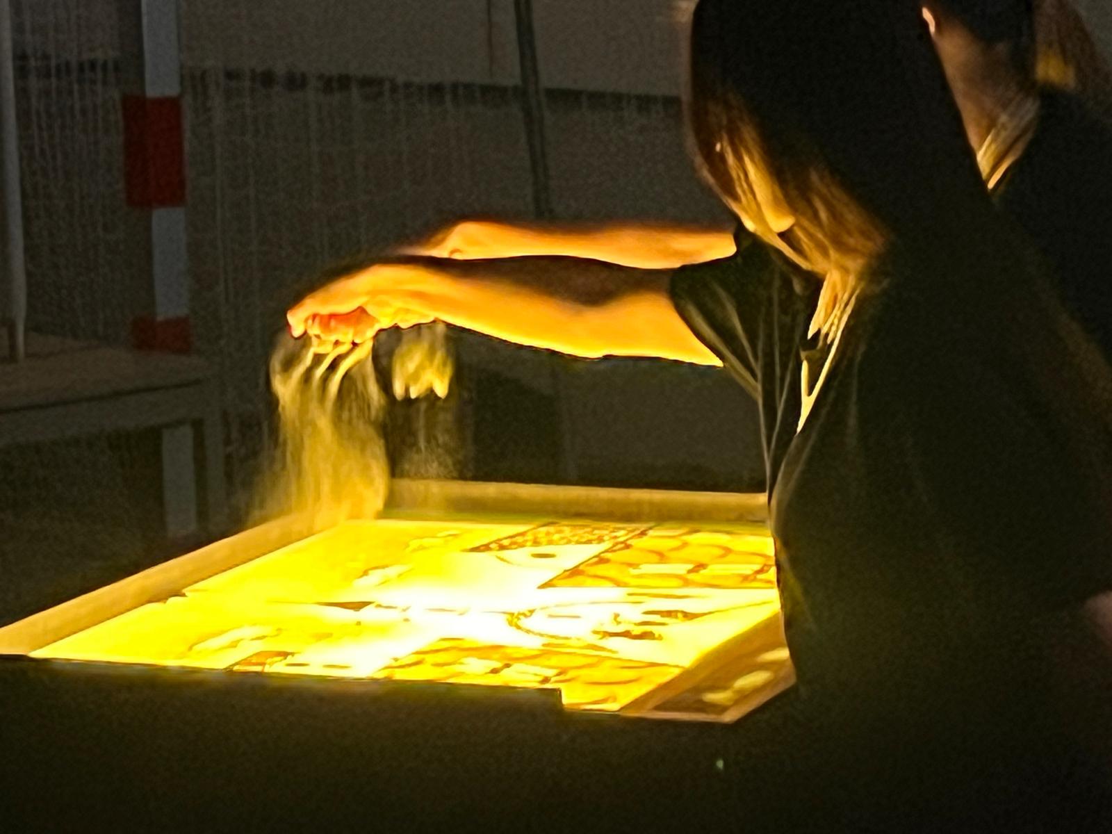 W dniu 25 września 2025 r. dzieci z naszego przedszkola miały okazję uczestniczyć w niezwykłym wydarzeniu  artystycznym pt. „Piaskowa magia”. Spektakl był skierowany przede wszystkim do grup starszych – dzieci 5- i 6-letnich, które mogły w pełni docenić formę i treść pokazu.Podczas przedstawienia dzieci wysłuchały bajki „Królowa Śniegu”, jednej z najbardziej znanych i lubianych baśni Hansa Christiana Andersena. Towarzyszyło jej wyjątkowe widowisko plastyczne – artystki na oczach publiczności tworzył obrazy z piasku, które zmieniały się wraz z kolejnymi wydarzeniami opowieści. Dzięki temu historia zyskała niezwykłą oprawę wizualną i muzyczną, a dzieci mogły przeżyć bajkę w zupełnie nowy, magiczny sposób.