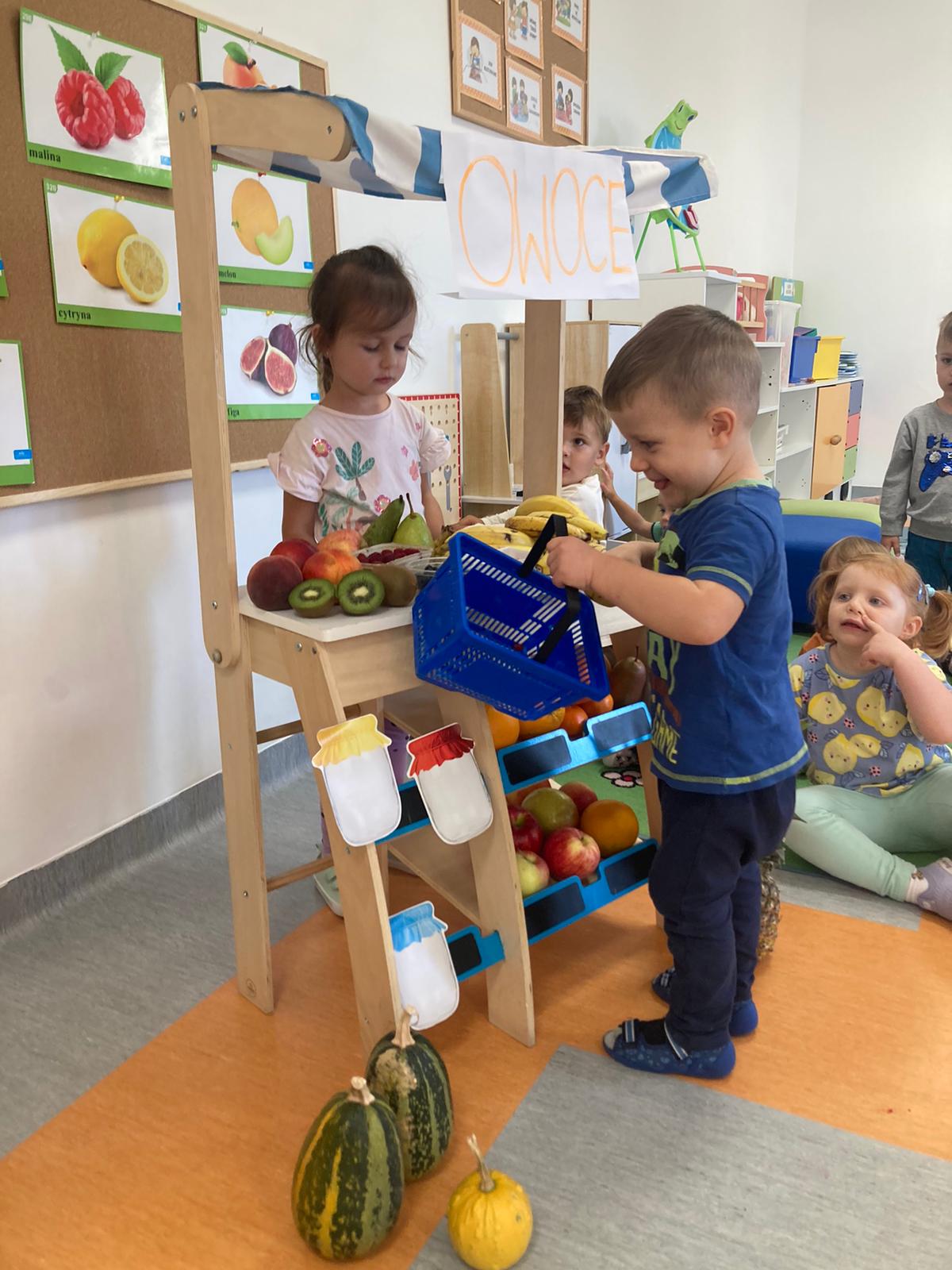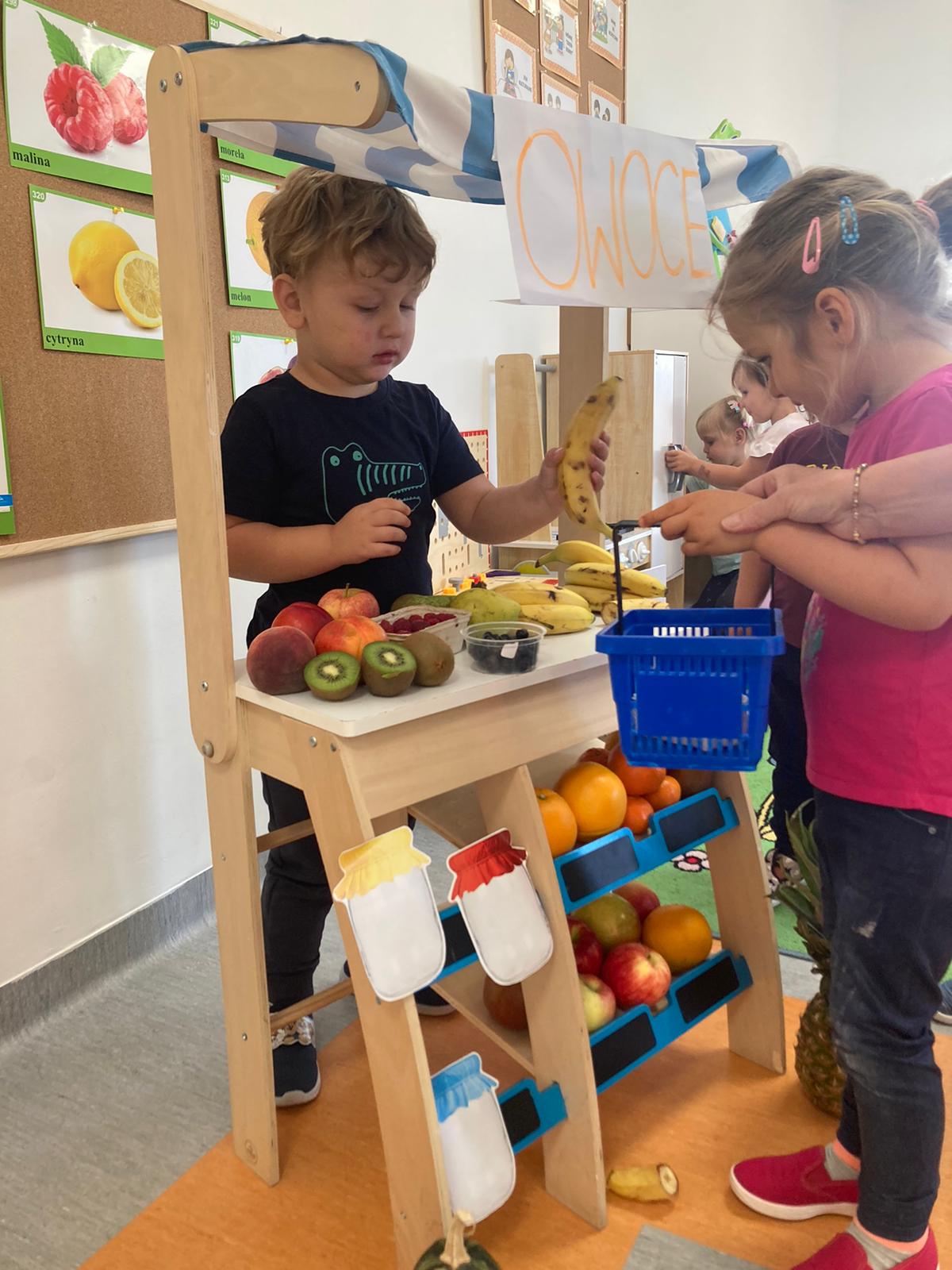 Przedszkolaki z grupy „Słoneczka” przyniosły do przedszkola swoje ulubione owoce. Podczas zajęć dzieci miały okazję zobaczyć, dotknąć, powąchać oraz posmakować takich owoców jak: kiwi, ananas, maliny, borówki, banan czy pomarańcza.