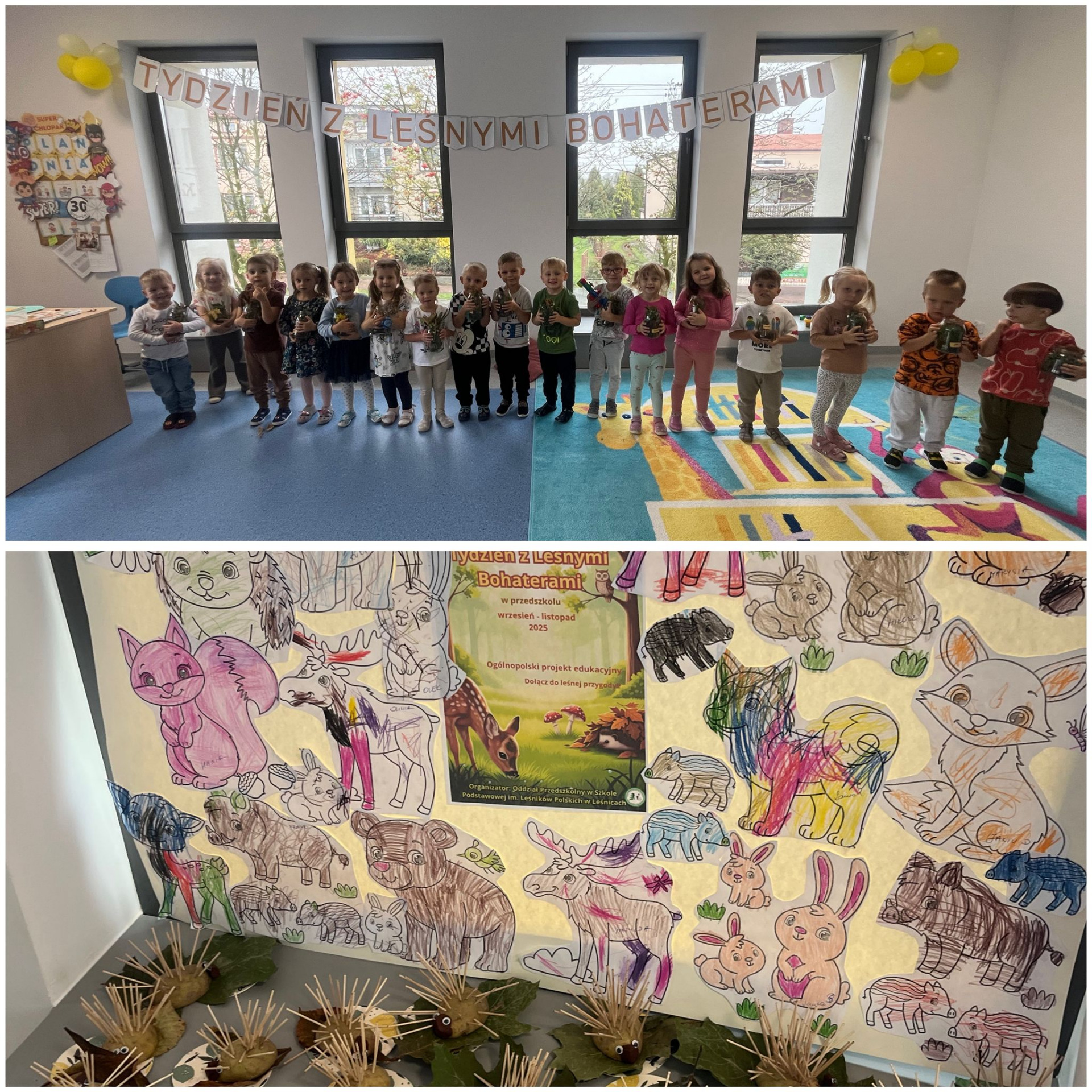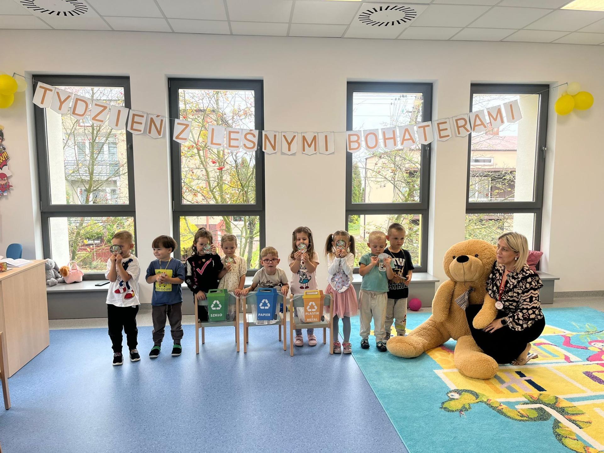 W tym tygodniu przedszkolaki z grup "Misie" i "Sówki" ukończyły Ogólnopolski Projekt Edukacyjny #TydzieńZLeśnymiBohaterami. Celami projektu było :