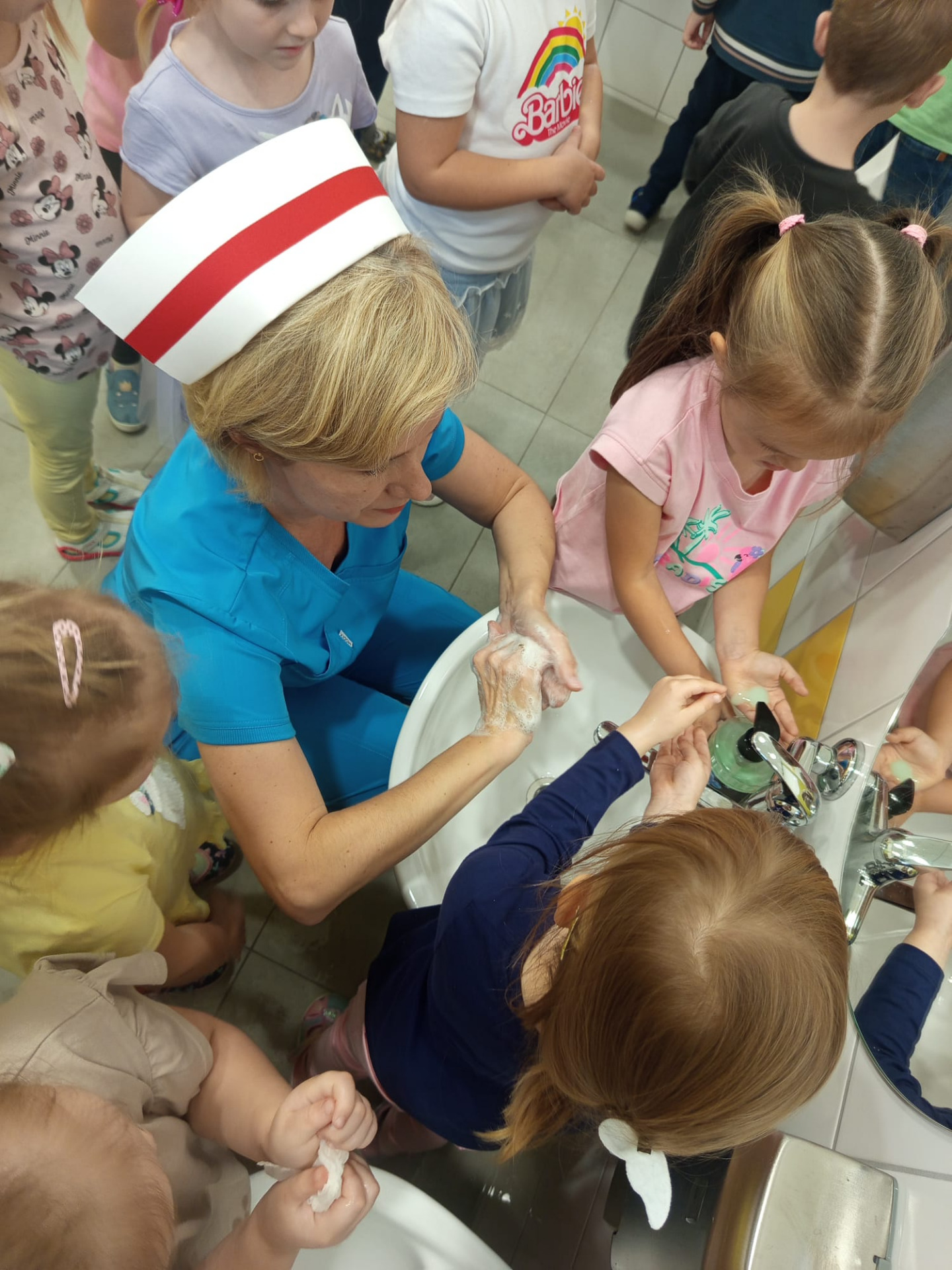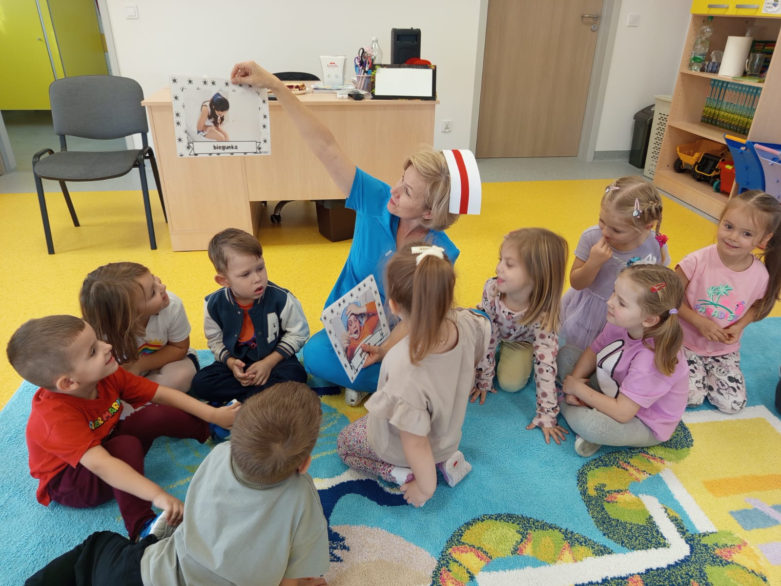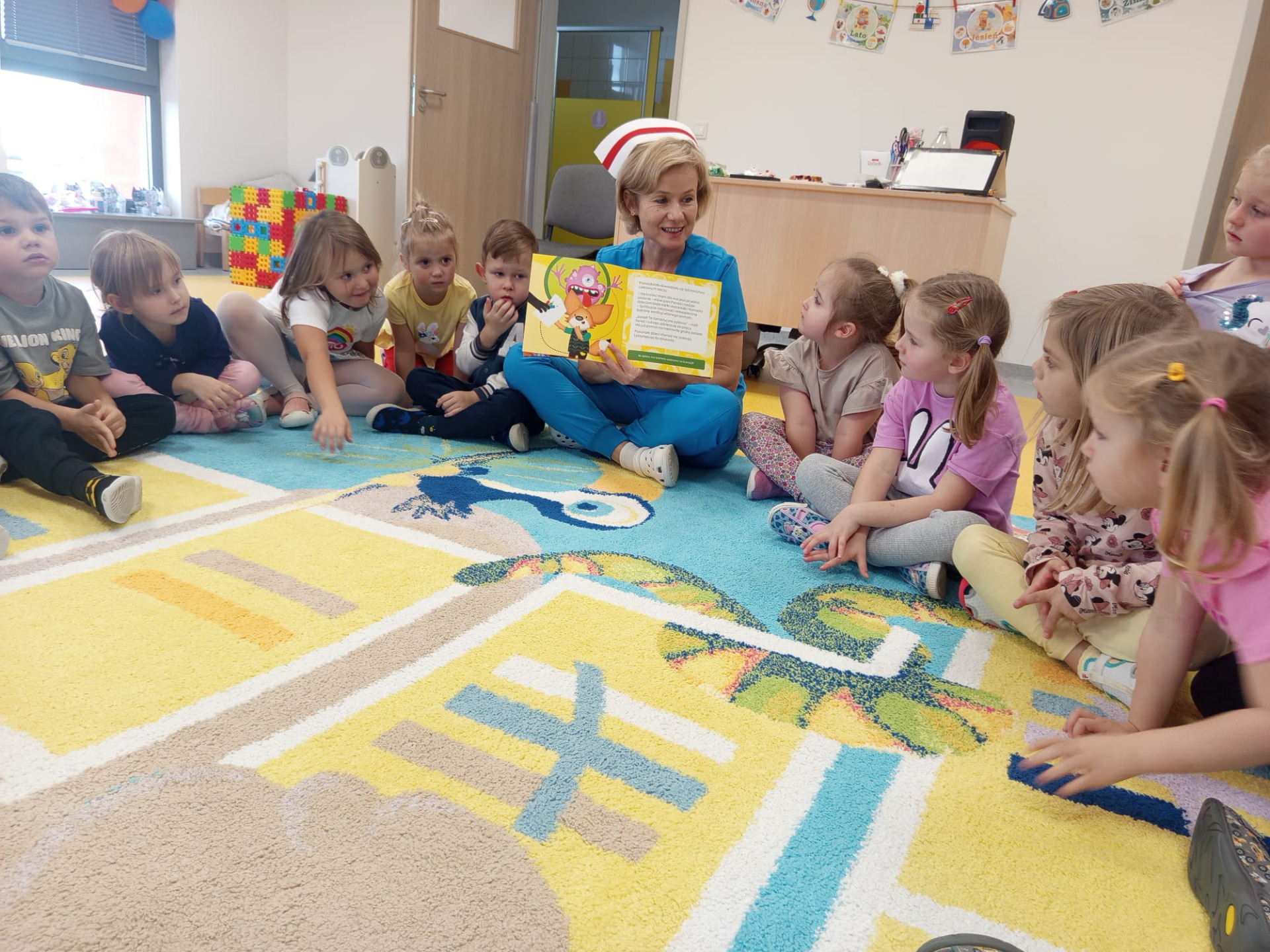 Dziś grupę Liski 🦊odwiedziła Pani Ania Jakubczyk, położna na codzień pracująca w Szpitalu Powiatowym w Radomsku, która w bardzo ciekawy sposób uatrakcyjniła obchody Światowego Dnia Mycia Rąk w naszej grupie,który co roku obchodzony jest 15.10. Pani Ania opowiedziała o tym jak ważne jest mycie rąk i dbanie o higienę, co się dzieje gdy nie myjemy rąk i do czego może doprowadzić. W ciekawy sposób poprzez doświadczenie pokazała co się dzieje z bakteriami i wirusami,gdy używamy tylko wody. Przeczytala opowiadanie o Fenku i jego przygodach z myciem rąk. Pokazała jak prawidłowo myć rączki a na koniec wręczyła pamiątkowe dyplomy i książeczki. Dzieciaki obejrzały również film edukacyjny o zagrożeniach związanych z brakiem higieny a na sam koniec pokolorowaly kolorowankę tematycznie związaną z tematem dzisiejszego dnia. Bardzo dziękujemy Pani Ani za ciekawe zajęcia,które się spotkały z ogromnym entuzjazmem dzieci.😊