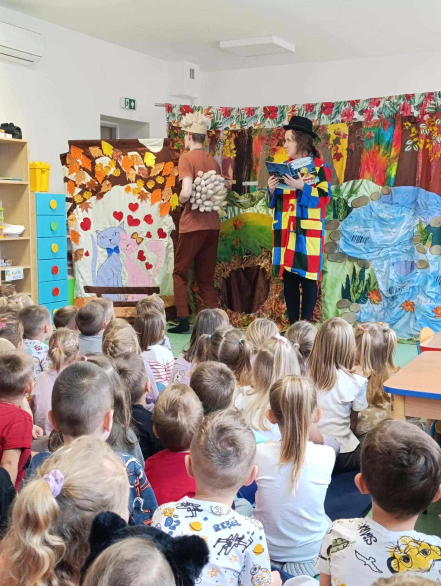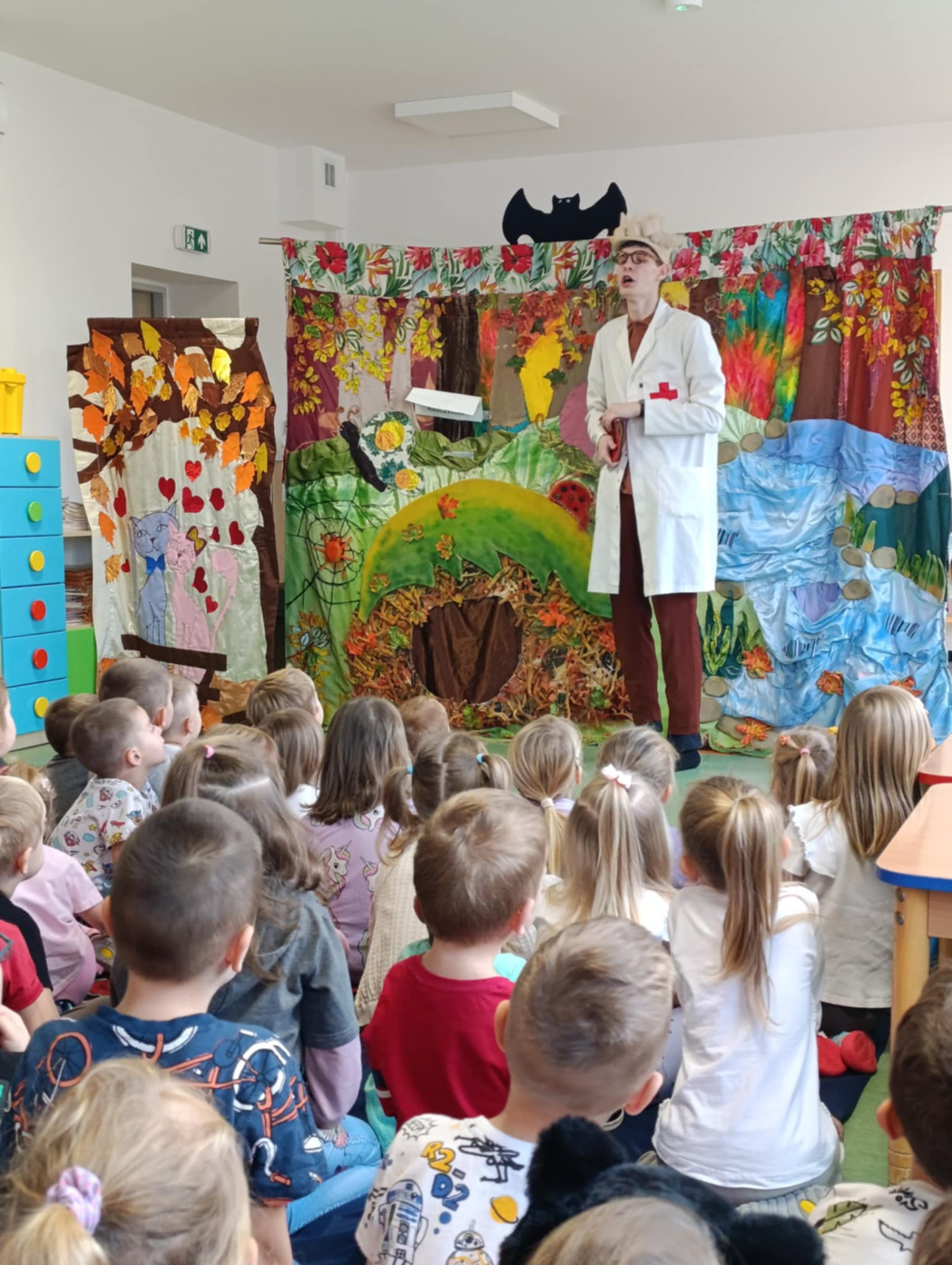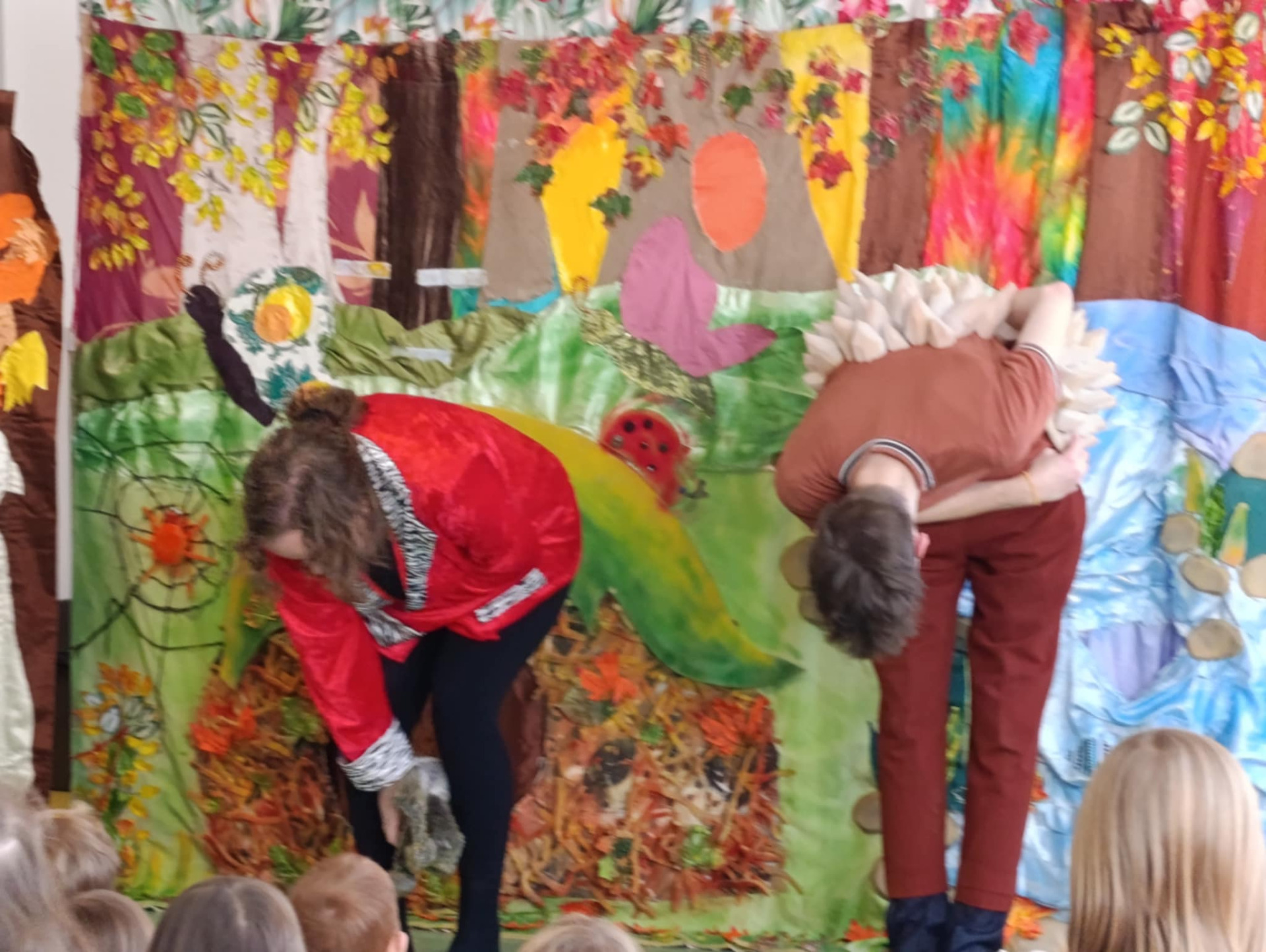 29 października nasze przedszkolaki dowiedzili aktorzy z teatru "MAGIK", którzy zaprezentowali dzieciom przedstawienie pt. „Jeżyk Samochwała”. Dzieci z ogromnym zaciekawieniem śledziły przygody małego Jeżyka, który uwielbiał się chwalić… ale w końcu odkrył, że prawdziwa wartość to nie przechwałki, tylko dobre serce, skromność i przyjaźń. Przedszkolaki dowiedziały się także ile przykrości i niebezpiecznych sytuacji może nieść ze sobą kłamstwo.