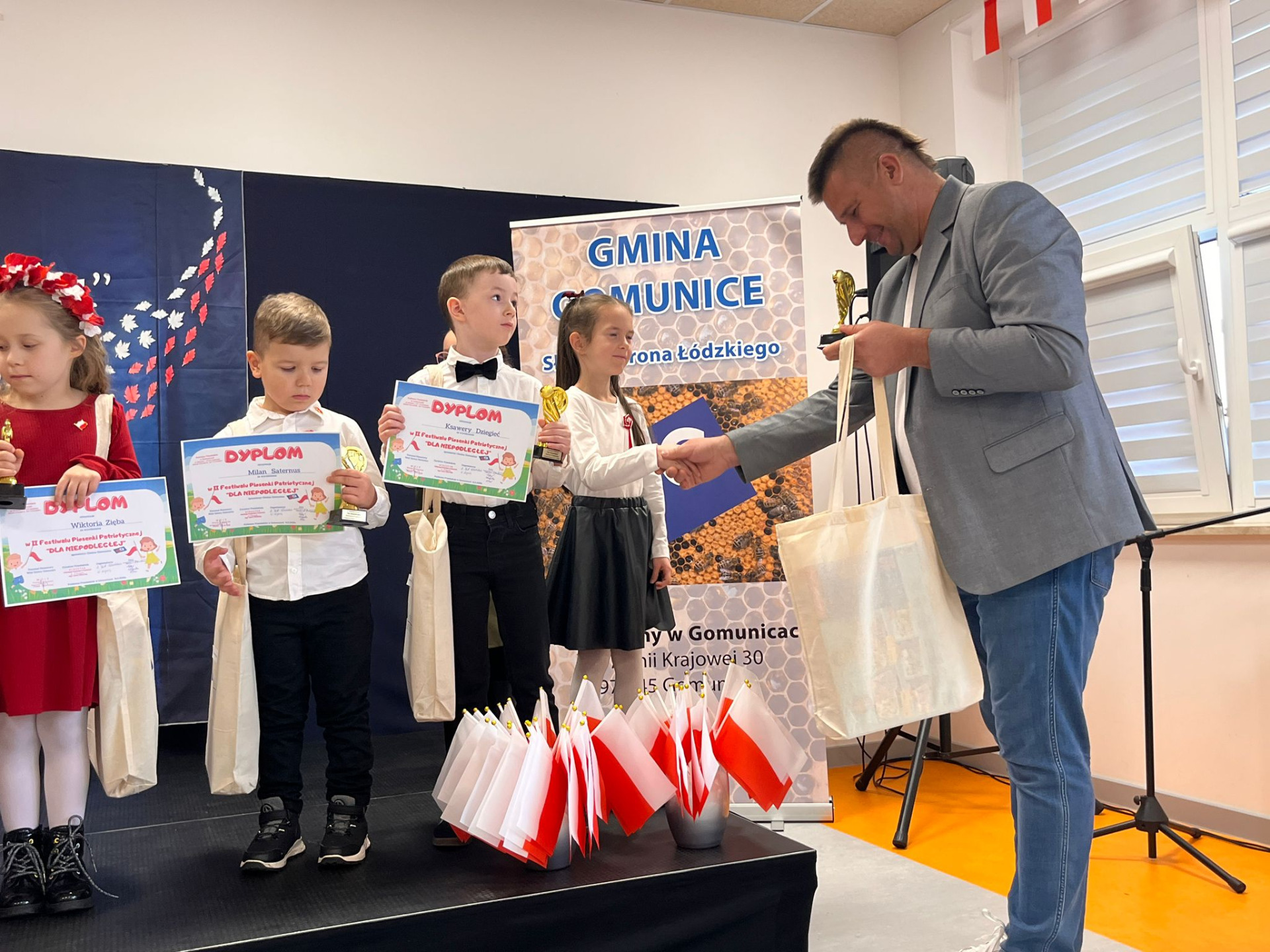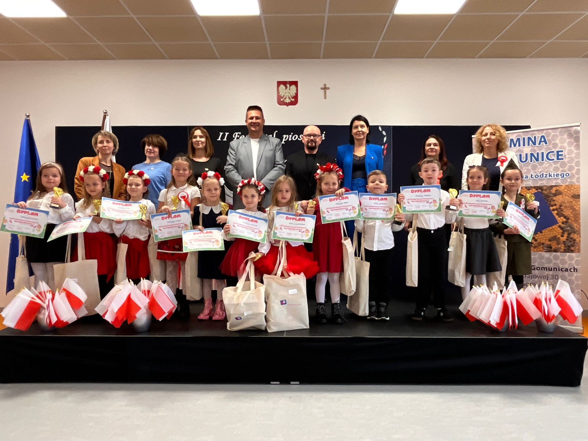 14 listopada w Publicznym Przedszkolu w Gomunicach odbył się II Międzyprzedszkolny Festiwal Piosenki Patriotycznej pod hasłem „Dla Niepodległej”. Celem wydarzenia było kształtowanie postaw patriotycznych wśród najmłodszych, rozwijanie ich wrażliwości muzycznej oraz zachęcanie dzieci do poznawania historii i tradycji Polski poprzez śpiew.
