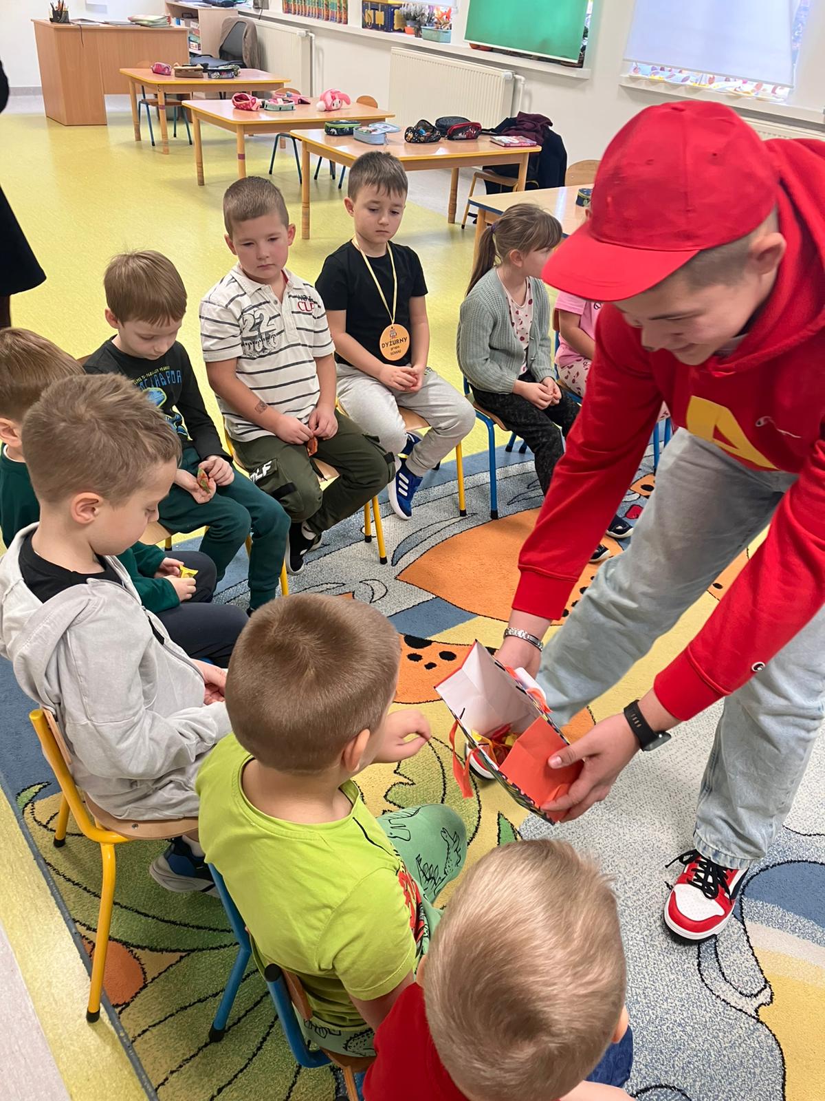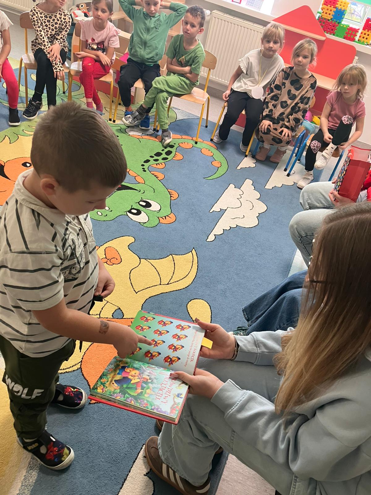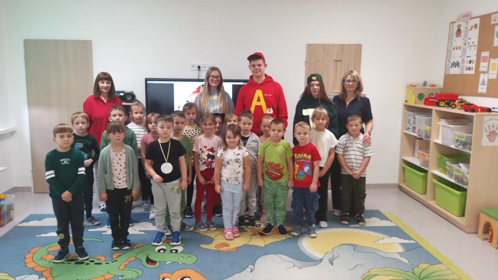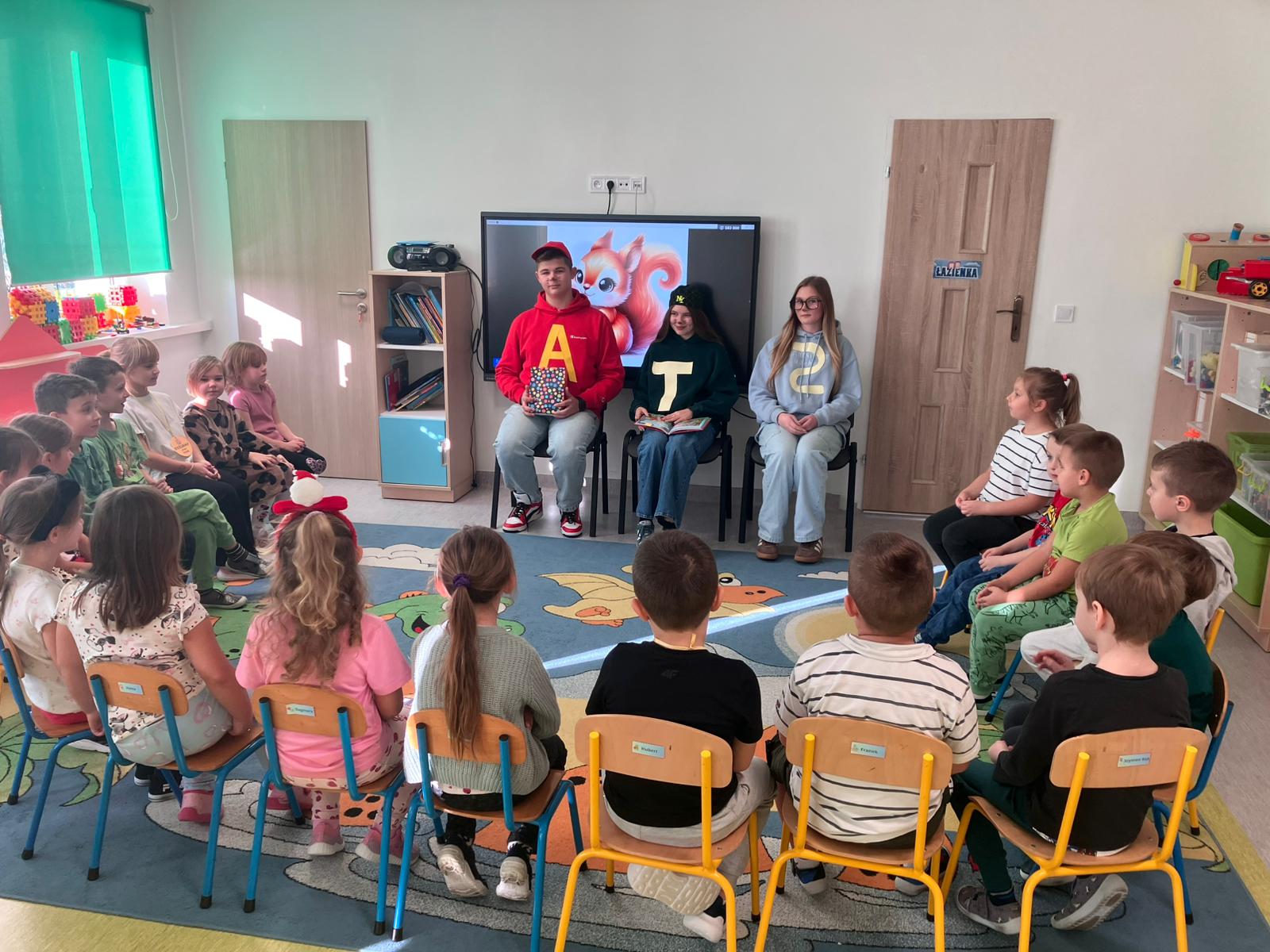 18.11.2025r grupę Sówki odwiedzili uczniowie Zespołu Szkół Ponadpodstawowychw Kamieńsku wraz z opiekunem - panią Agnieszką Grzejszczak. Celem akcji była promocja literatury i czytelnictwa oraz kształtowanie właściwych postaw społecznych wśród dzieci. Przedszkolaki z zainteresowaniem wysłuchały czytanych przez uczniów opowiadań, zadawały pytania i rozwiązywały zagadki. Sedrecznie dziękujemy naszym gościom za przybycie oraz kształtowanie kompetencji czytelniczych wśród najmłodszych.