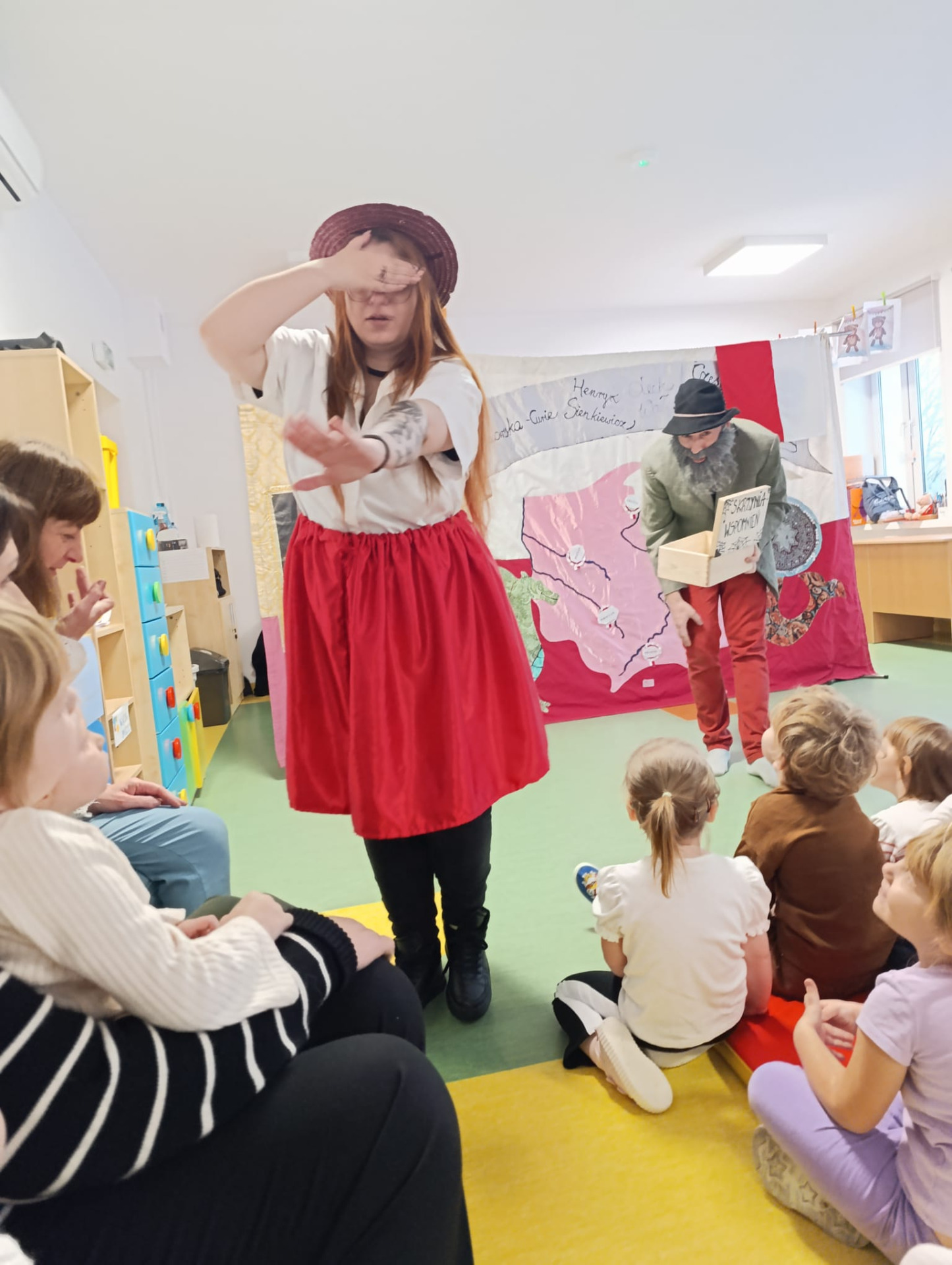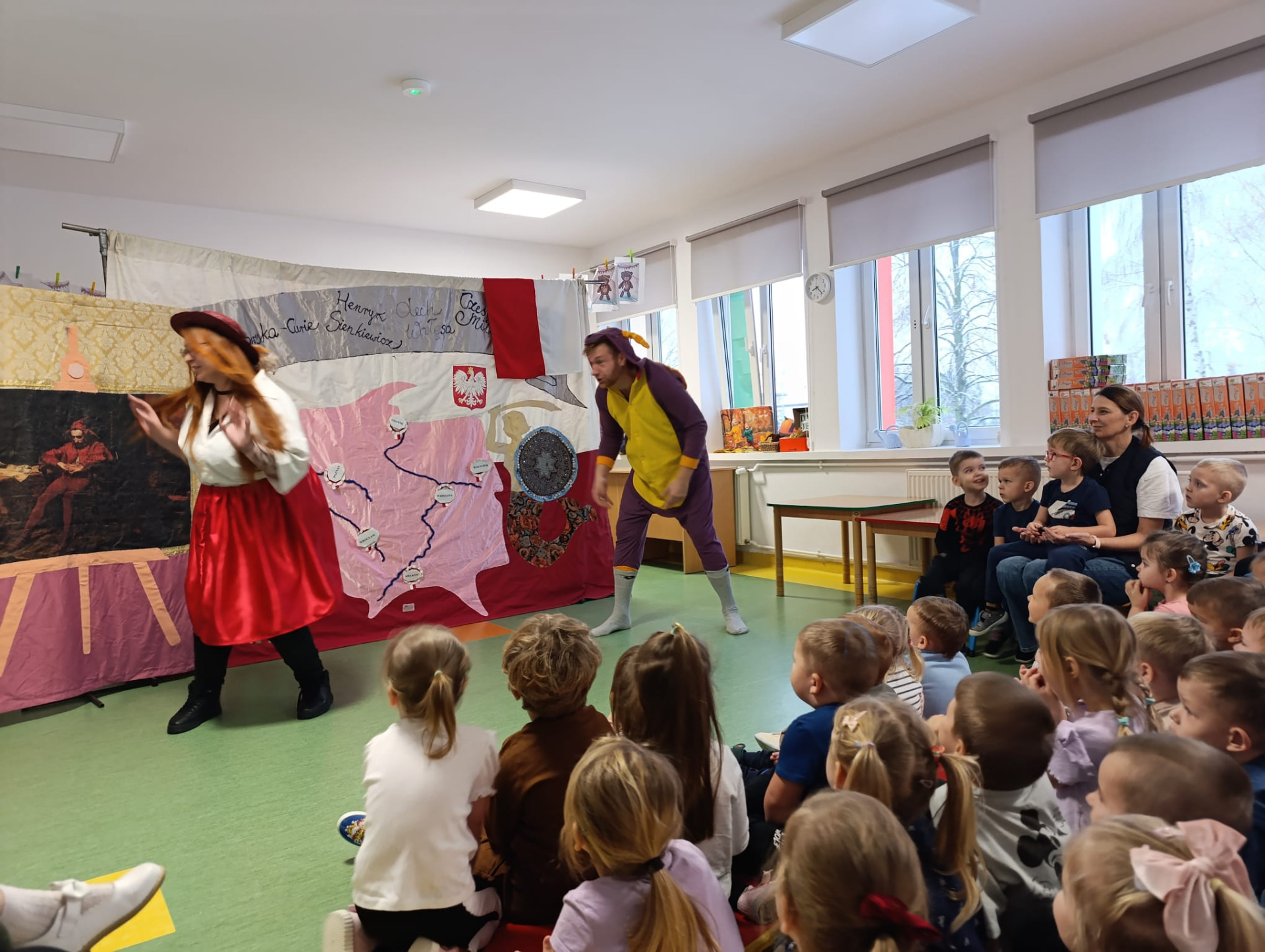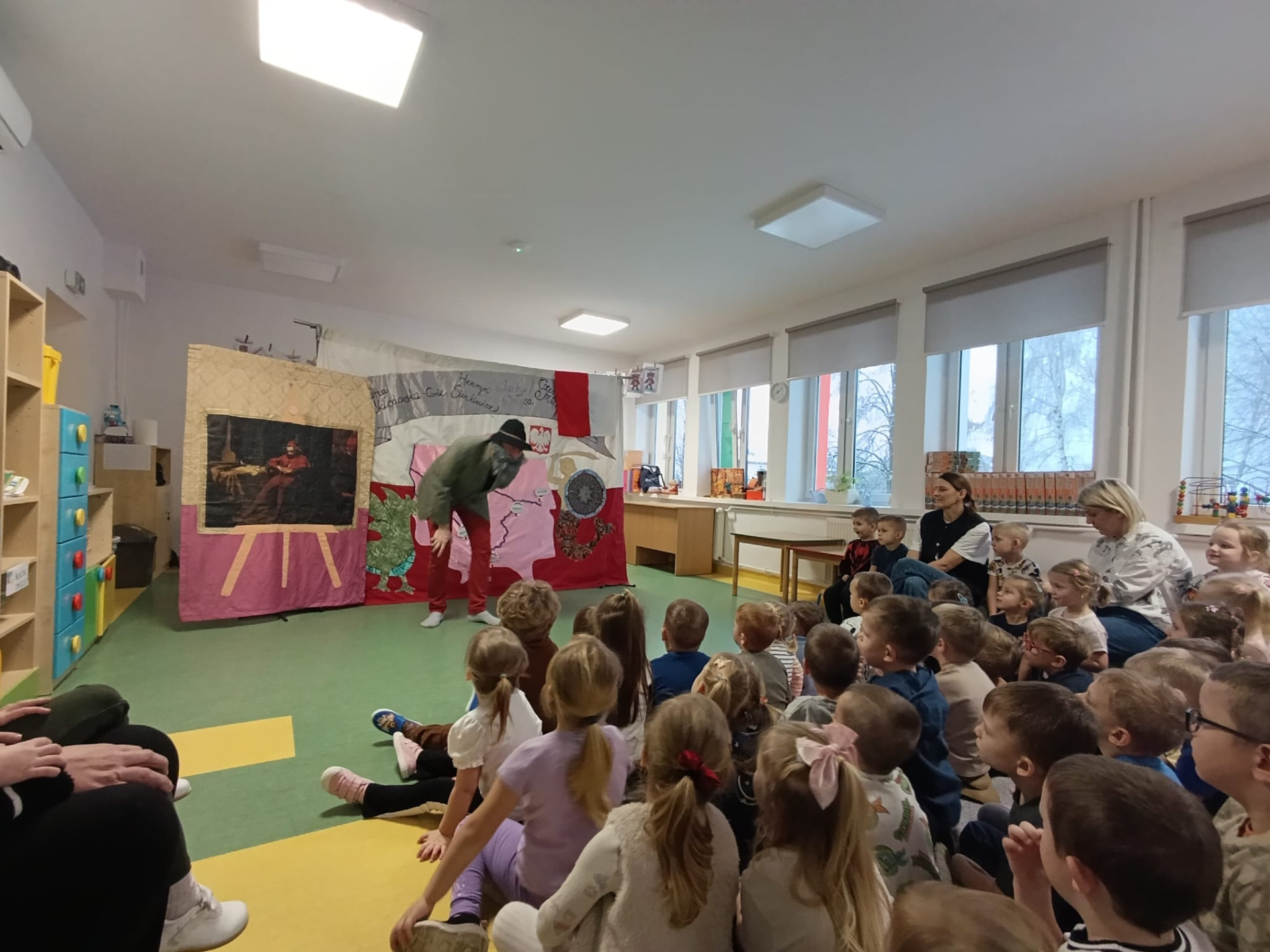26 listopada przedszkolaki obejrzały spektakl Teatru Profilaktycznego Magik pt. "Elementarz młodego patrioty". Opowiadał on o perypetiach małej Zosi, która z urwisa zmieniła się w gorącą patriotkę, zafascynowaną historią swojego narodu i jego wielkimi bohaterami. Przedstawienie charakteryzowało się zaskakującą akcją, dialogiem z publicznością, a także wieloma śmiesznymi sytuacjami, co sprawiło, że było interesujące i przystępne, a zarazem posiadało ważne przesłanie, jakim jest pielęgnacja tożsamości narodowej od najmłodszych lat.