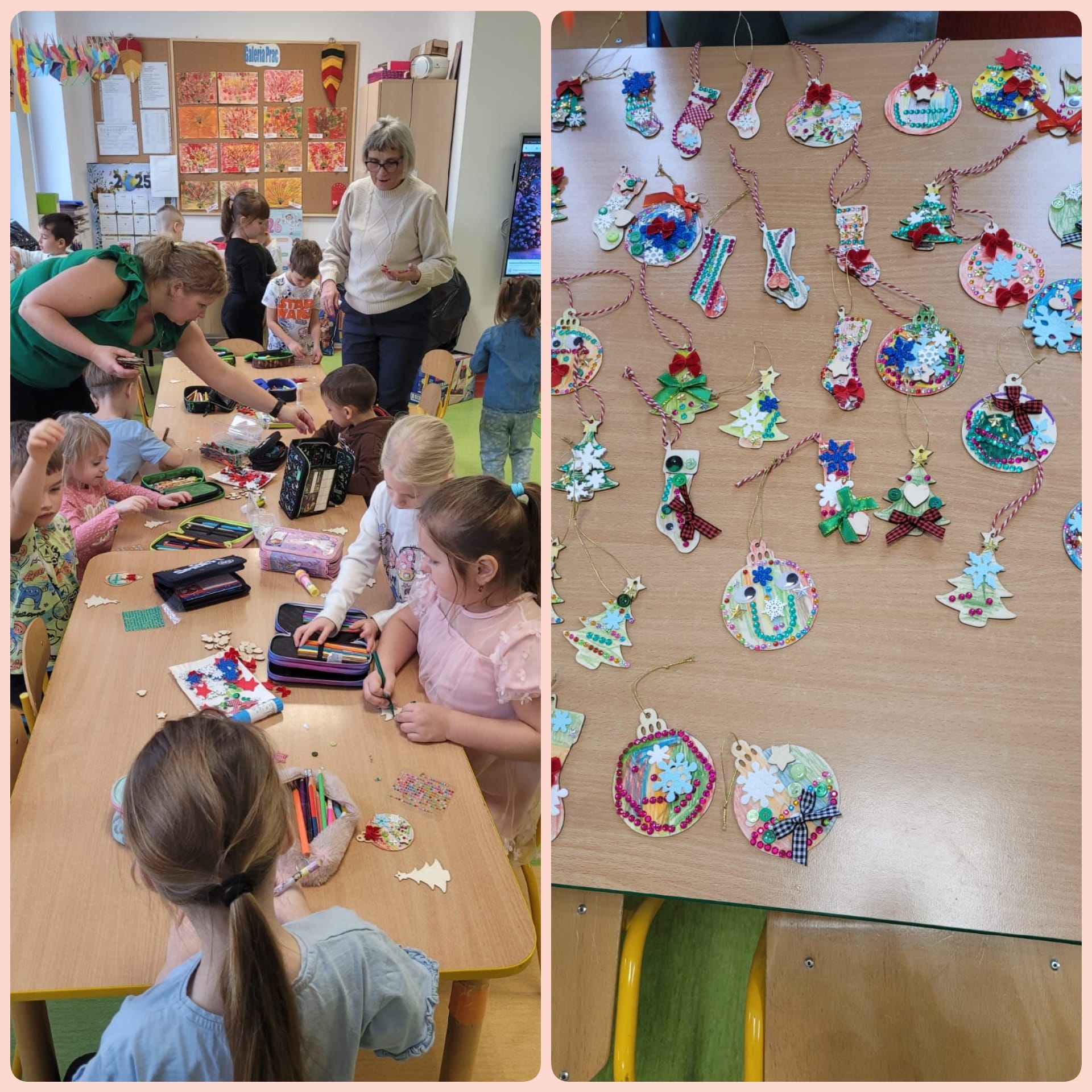 Całe warsztaty dopełniło ozdabianie drewnianych dekoracji, które każde dziecko zawiesi na swojej choince . 🎄🎄🎄