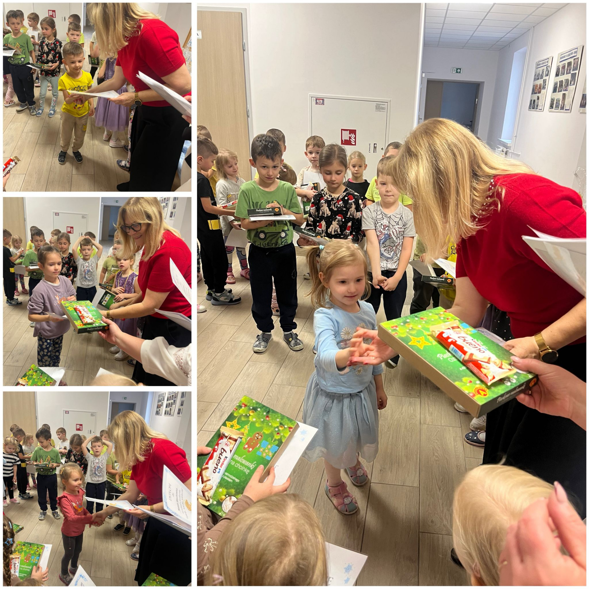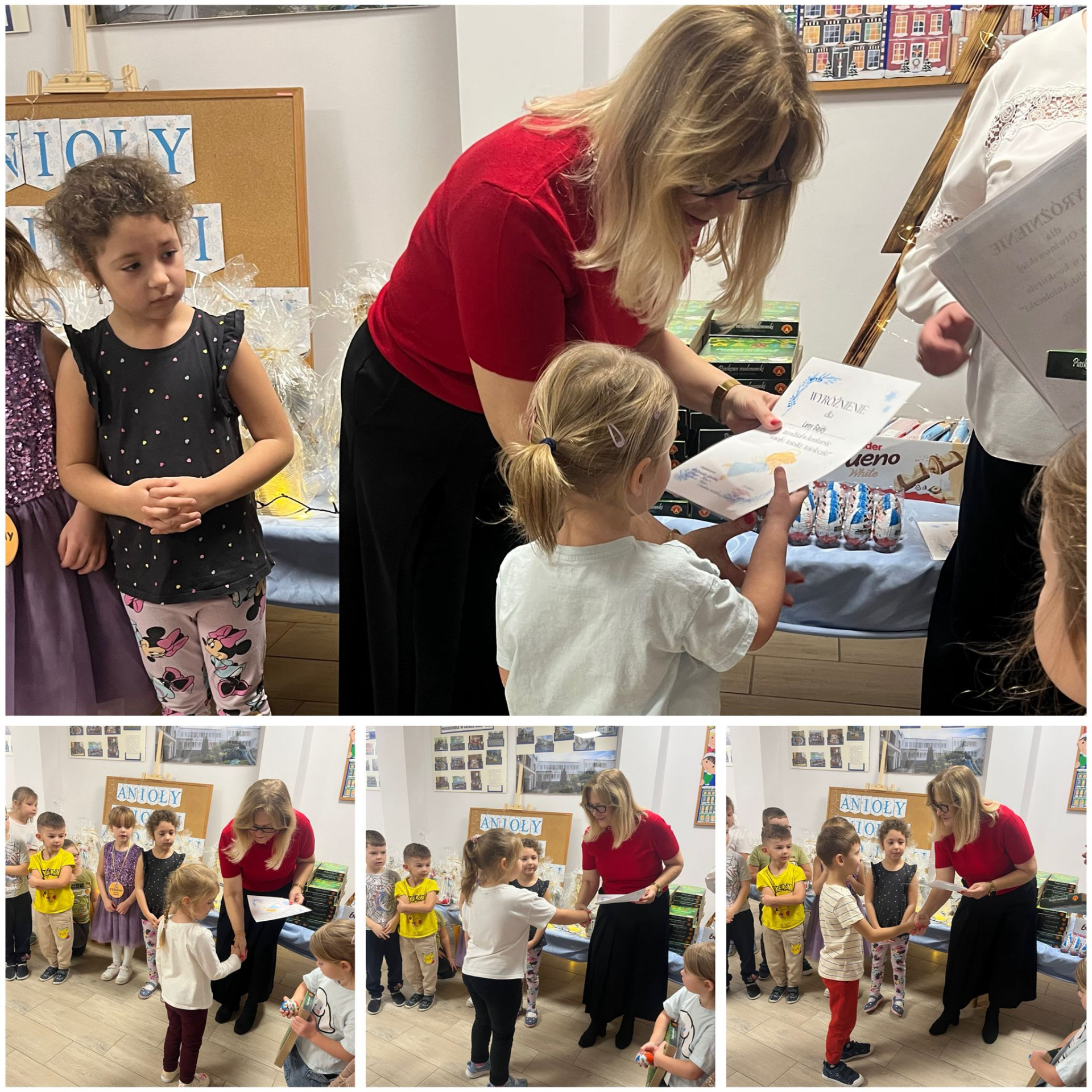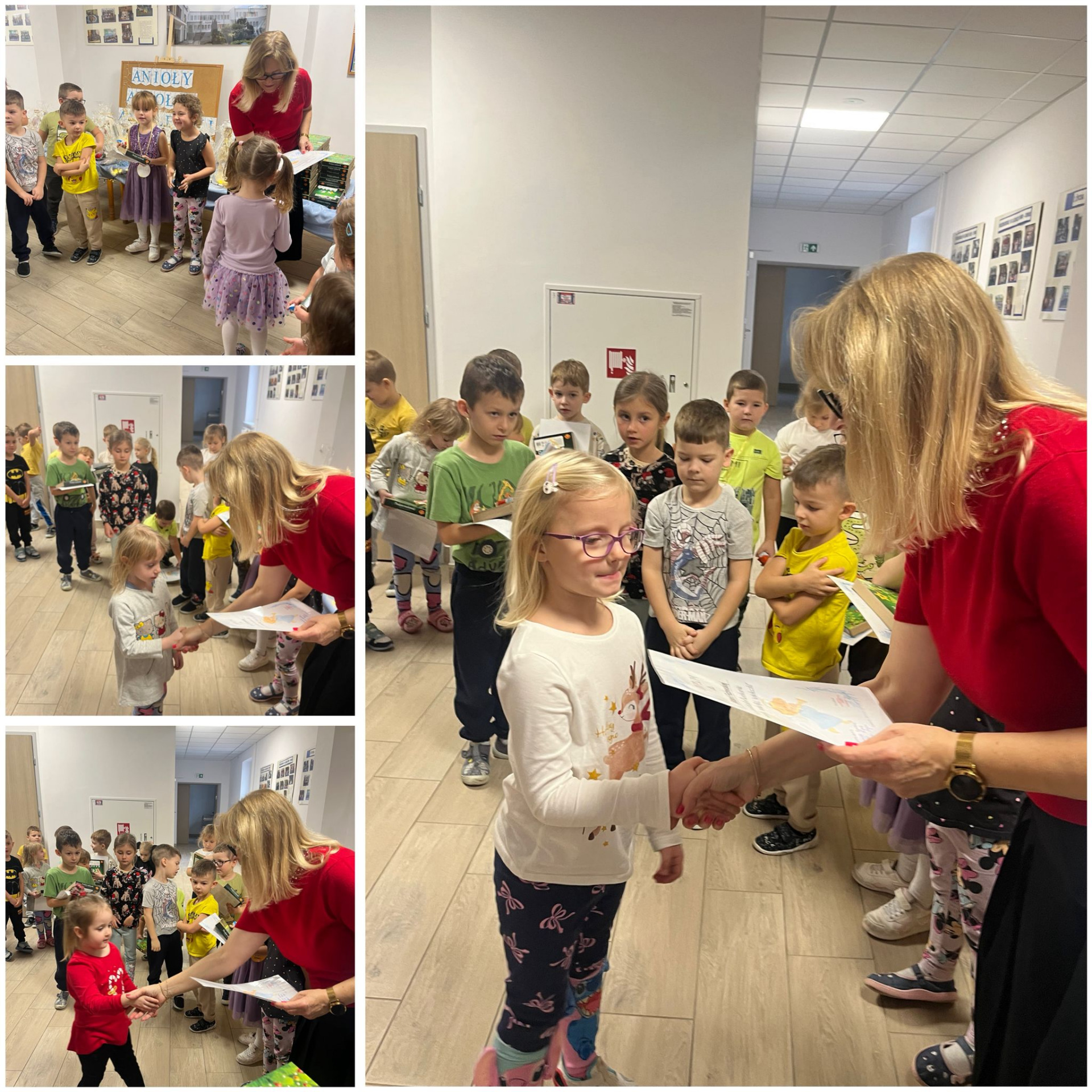 W dniu dzisiejszym nastąpiło wręczenie dyplomów i nagród za udział w konkursie bożonarodzeniowym,,Anioły , aniołki, aniołeczki “. Do konkursu zostało zgłoszonych 47 prac . Jury zdecydowało przyznać 15 wyróżnień . Pozostałe dzieci również otrzymały dyplomy i nagrody .
