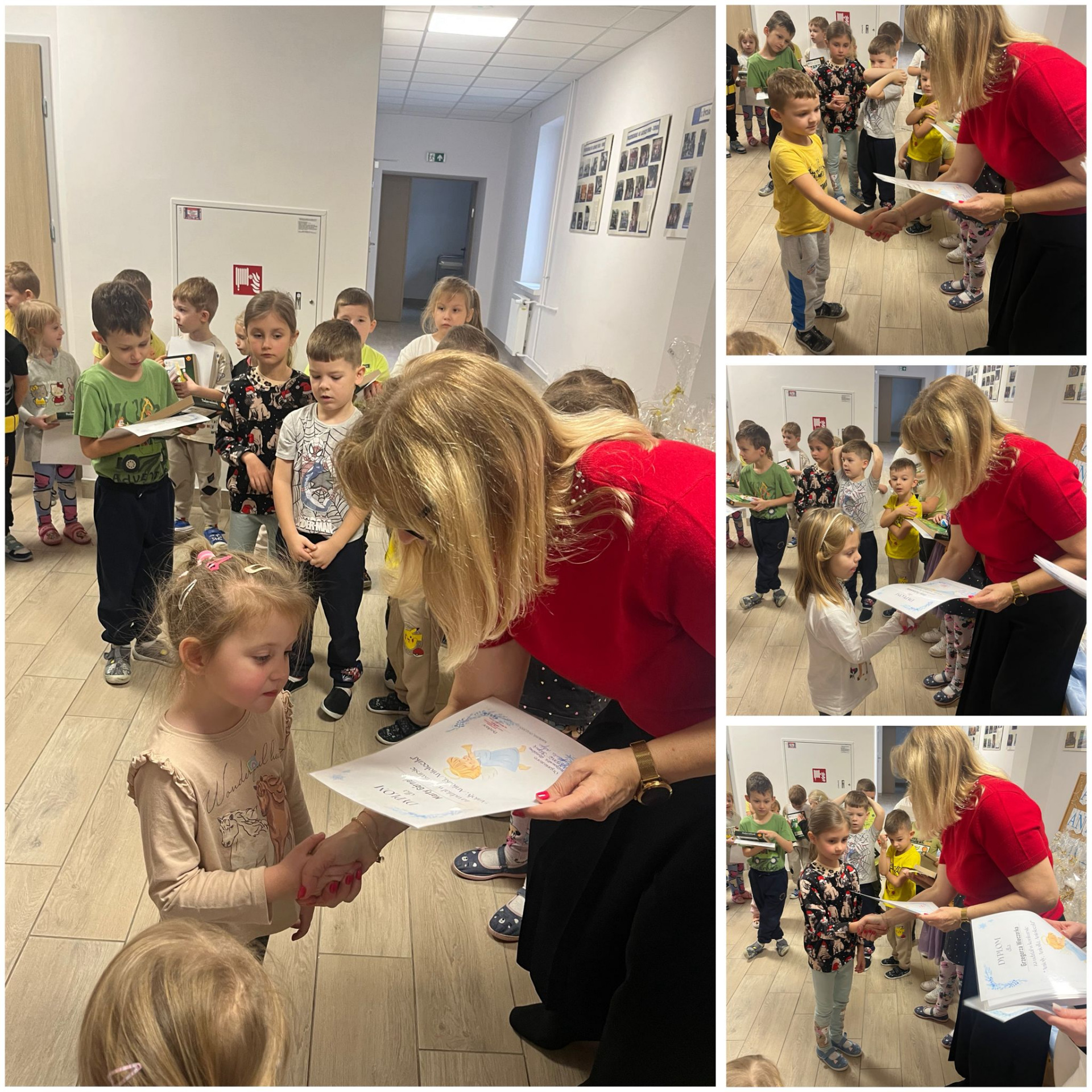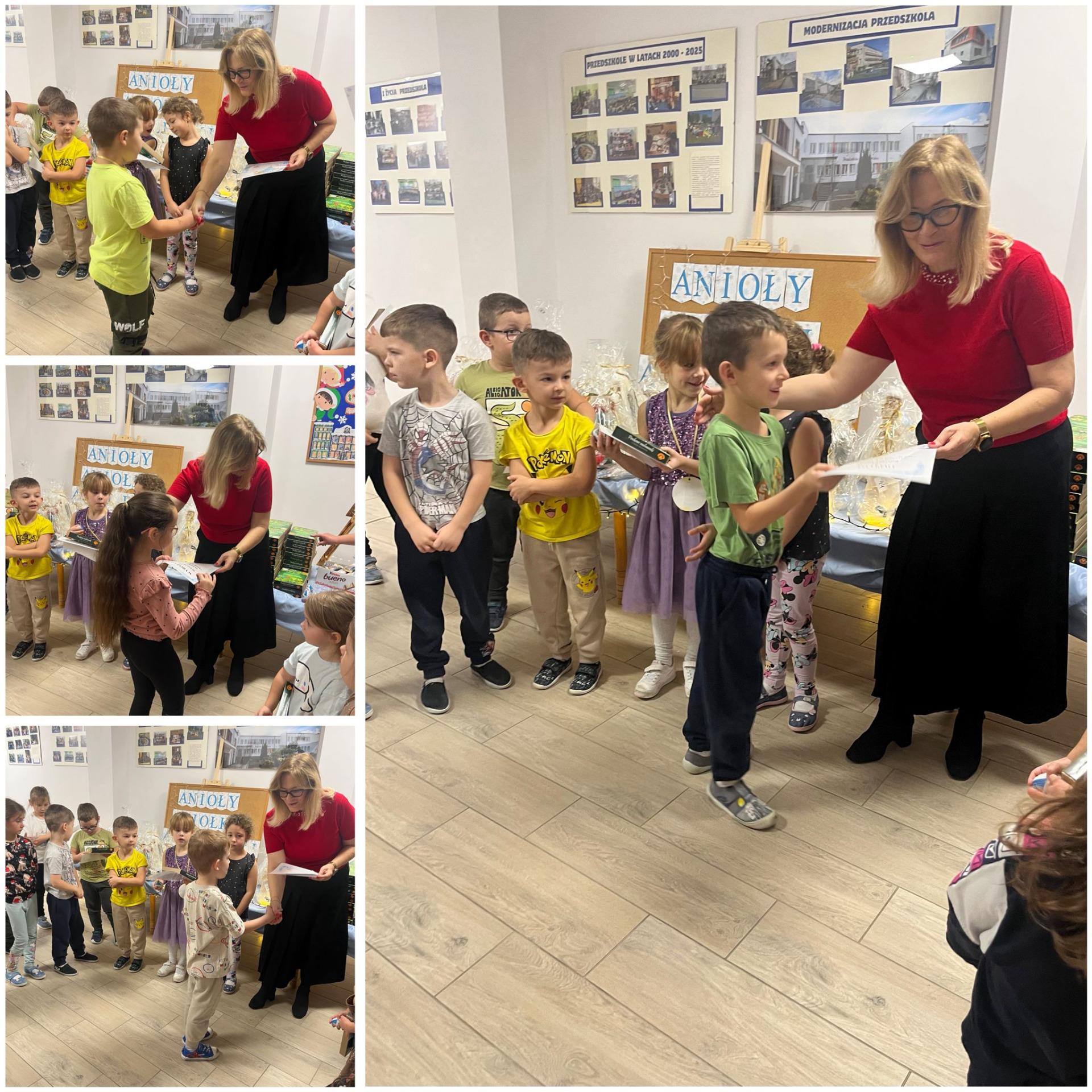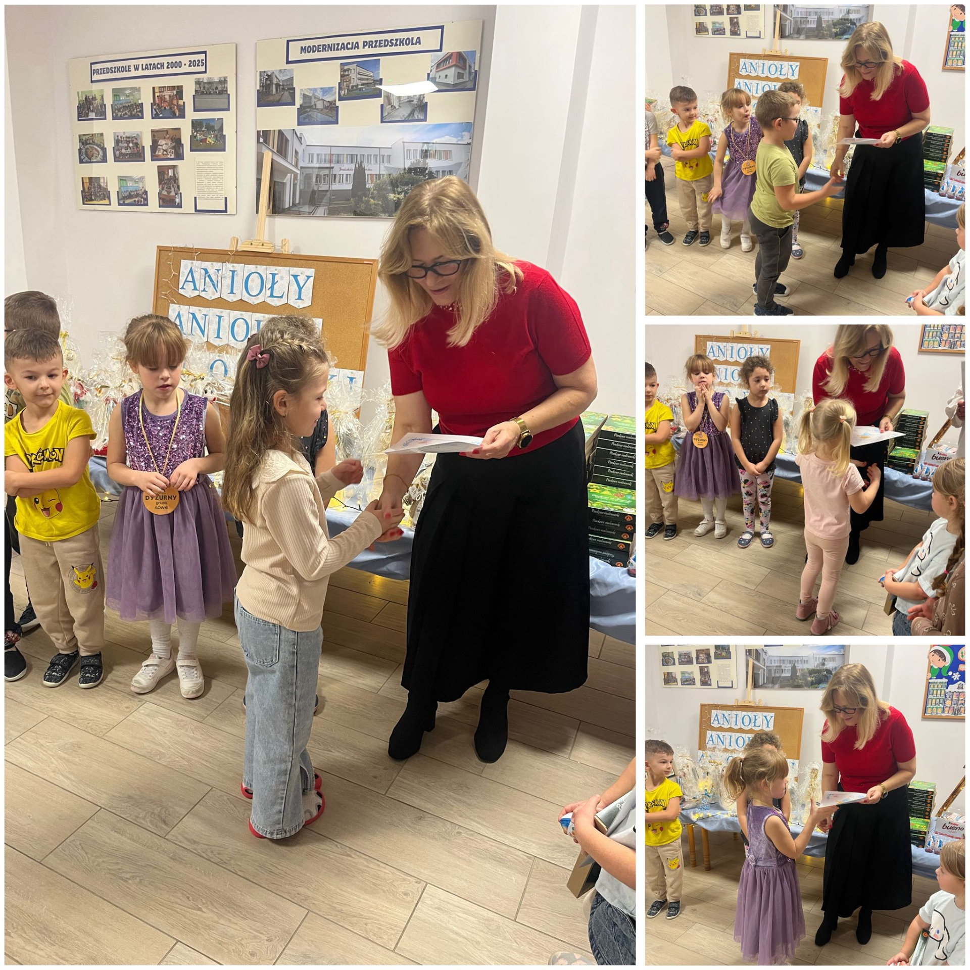 W dniu dzisiejszym nastąpiło wręczenie dyplomów i nagród za udział w konkursie bożonarodzeniowym,,Anioły , aniołki, aniołeczki “. Do konkursu zostało zgłoszonych 47 prac . Jury zdecydowało przyznać 15 wyróżnień . Pozostałe dzieci również otrzymały dyplomy i nagrody .