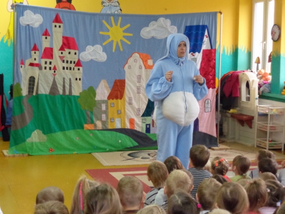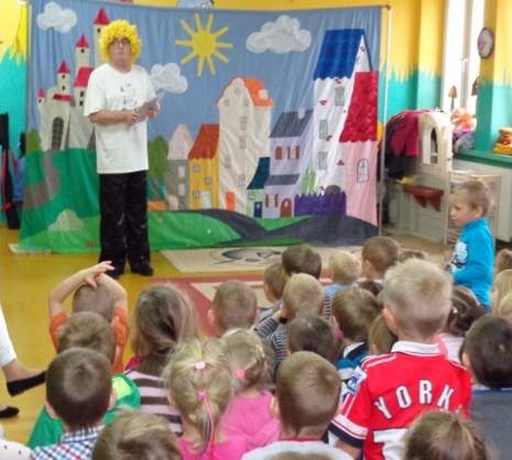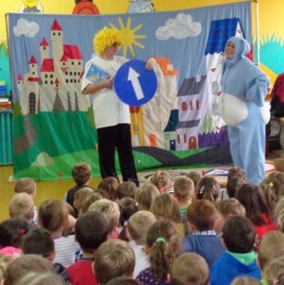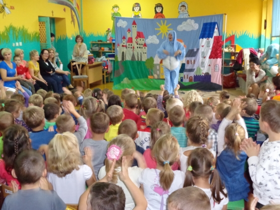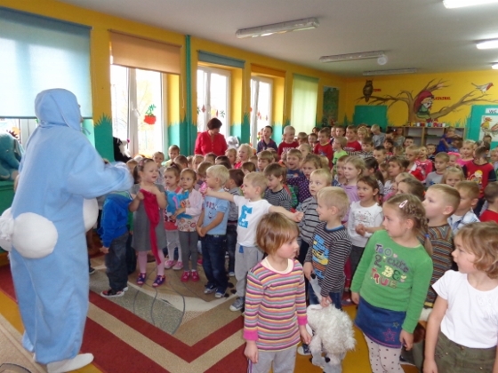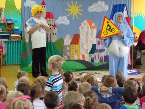 Dnia 24 października 2013r. do naszego przedszkola zagościł objazdowy teatr z przedstawieniem pt. "Miejska dżungla" czyli bezpiecznie na drodze. Aktorzy utrwalili dzieciom podstawowe zasady przechodzenia przez ulicę oraz ukazali niebezpieczeństwa, jakie mogą na nie czyhać poza domem czy przedszkolem. Aktorzy „wciągnęli” widzów w akcję przedstawienia, pozwalając im nie tylko oglądać, ale współtworzyć bajkę. Przygoda w "miejskiej dżungli” była dla naszych przedszkolaków nie tylko doskonałą zabawą, ale przede wszystkim „lekcją utrwalającą” tematykę „Bezpieczny przedszkolak”.